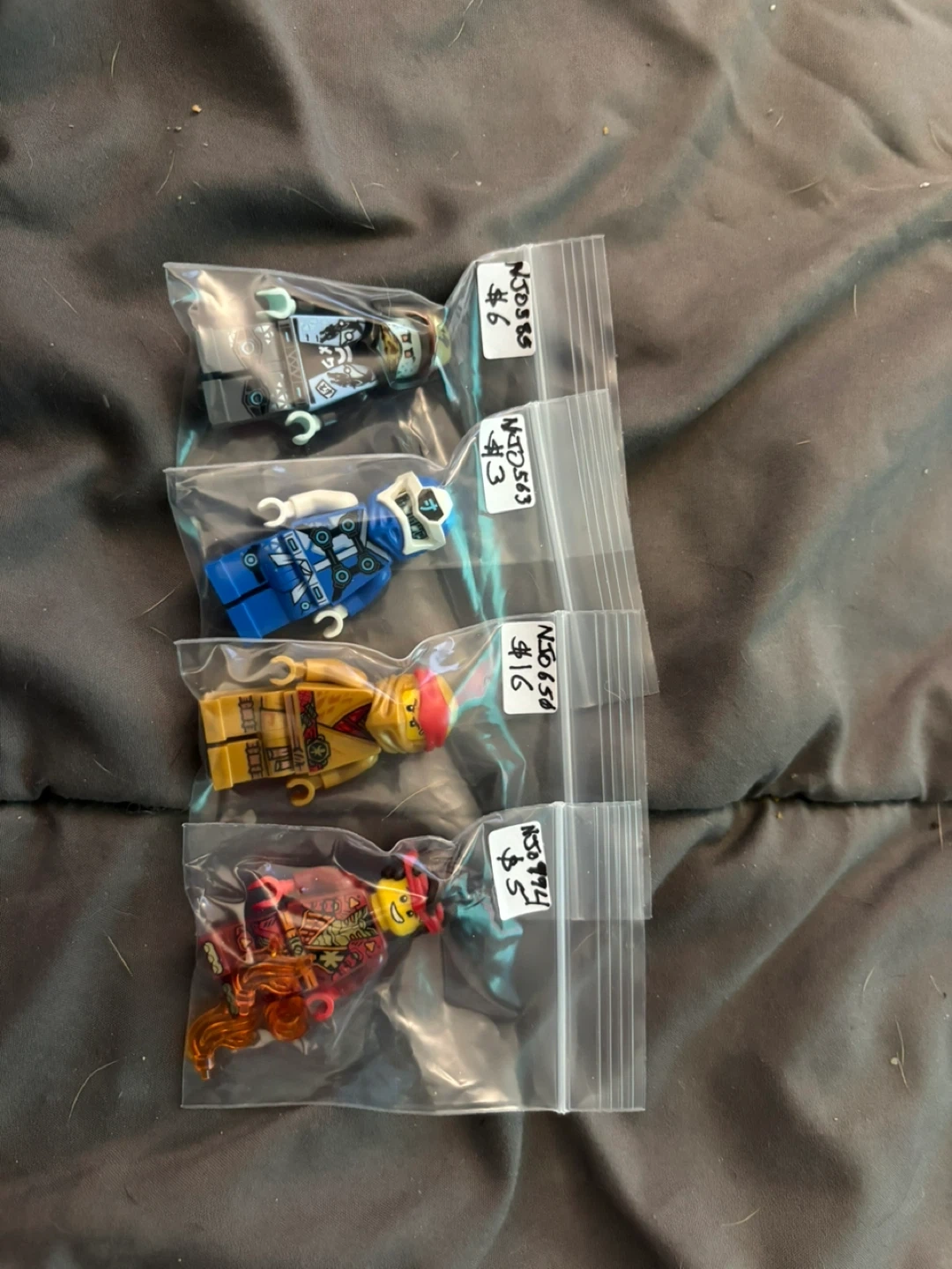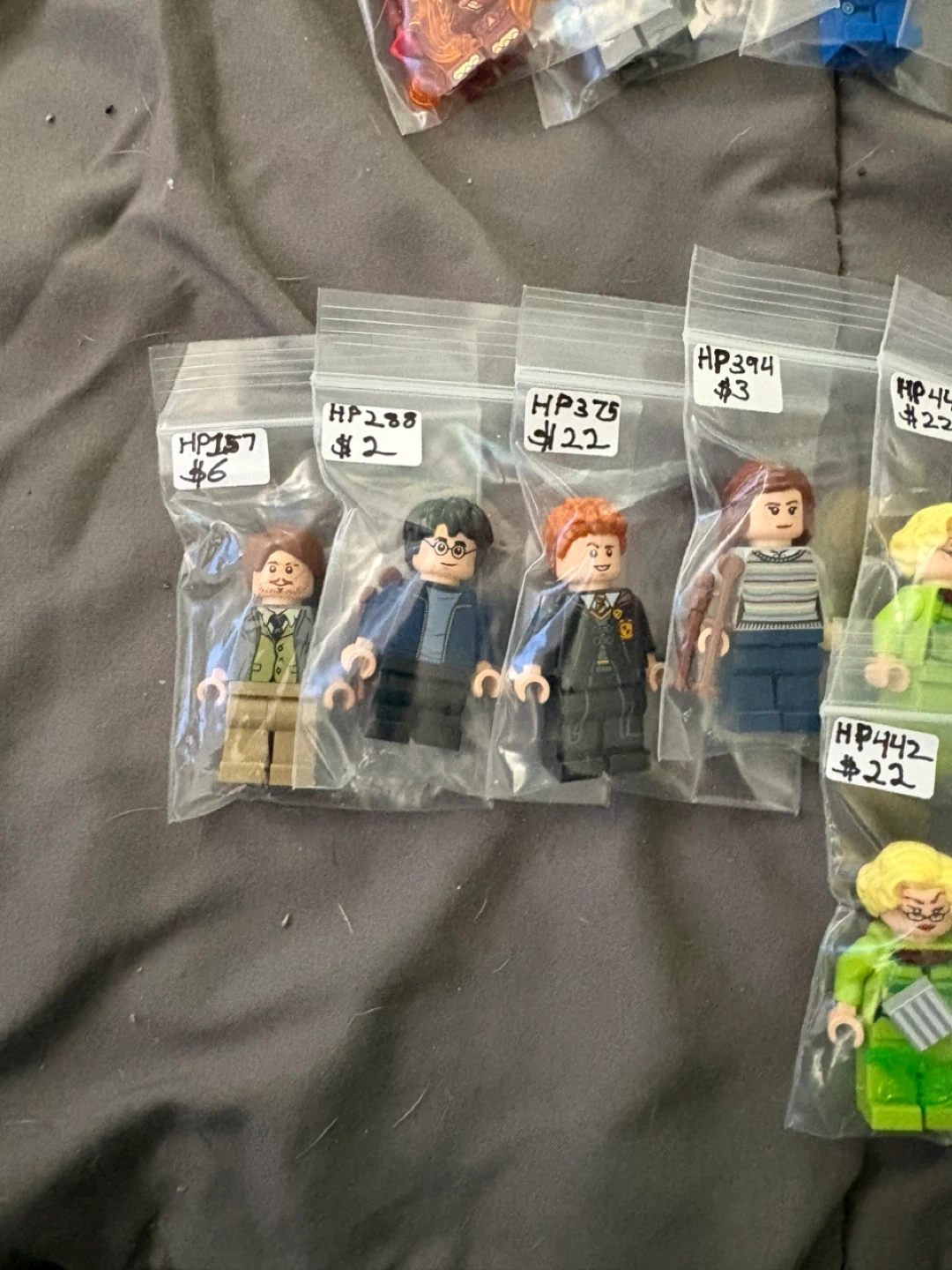 Collection of LEGO minifigures from various series including Ninjago, Minecraft, Harry Potter, and Friends. These are individual figures, each sealed in its own bag. Great for collectors or adding to your LEGO creations!