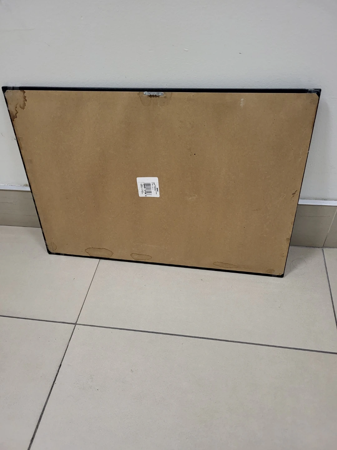 Black framed real glass mirror. Not a plastic one.