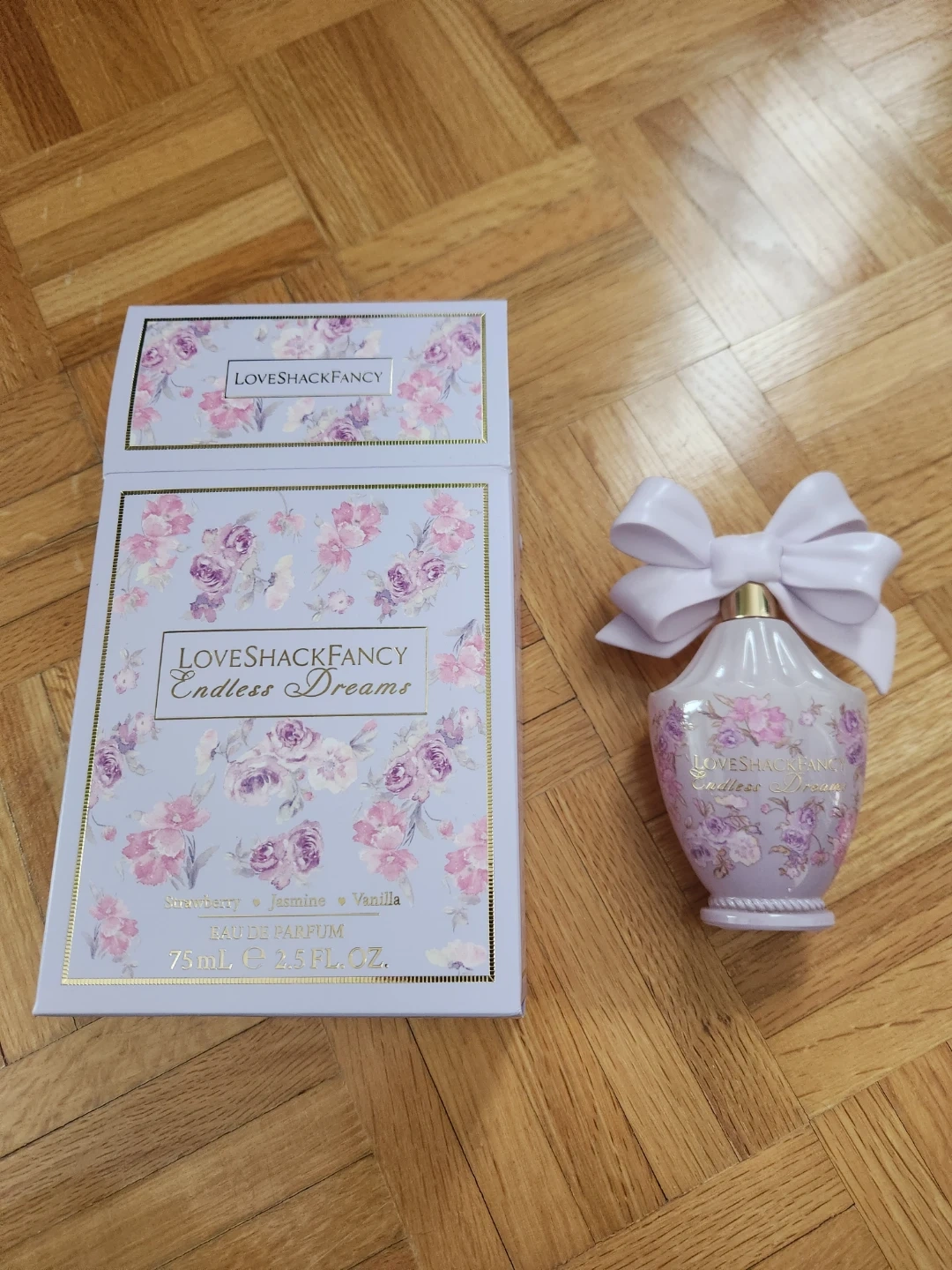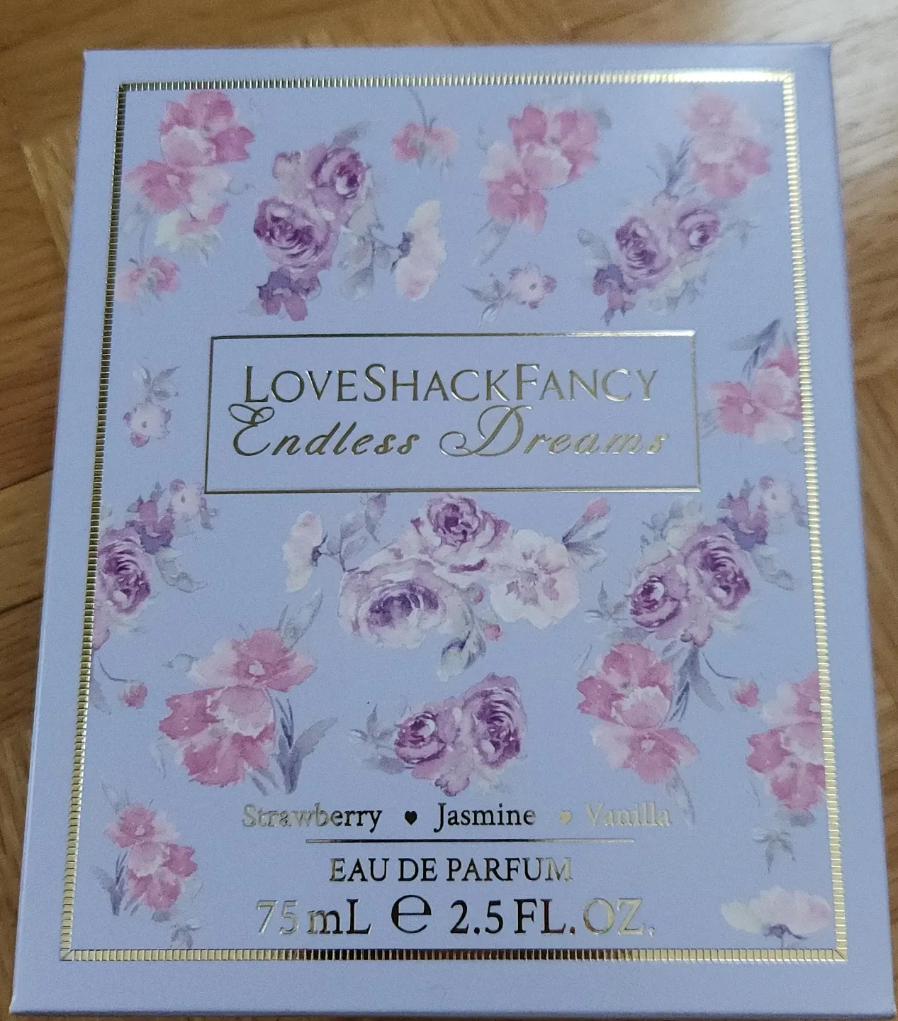LoveShackFancy Endless Dreams Eau de Parfum. Strawberry, Jasmine, and Vanilla scents. Includes original box. 75 mL (2.5 FL. OZ.). Opened, New, never used