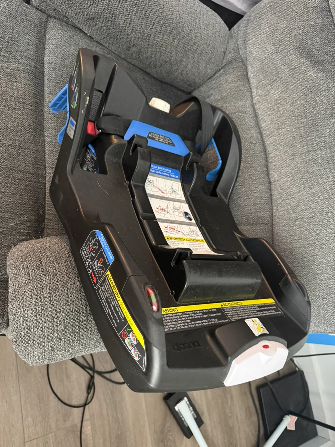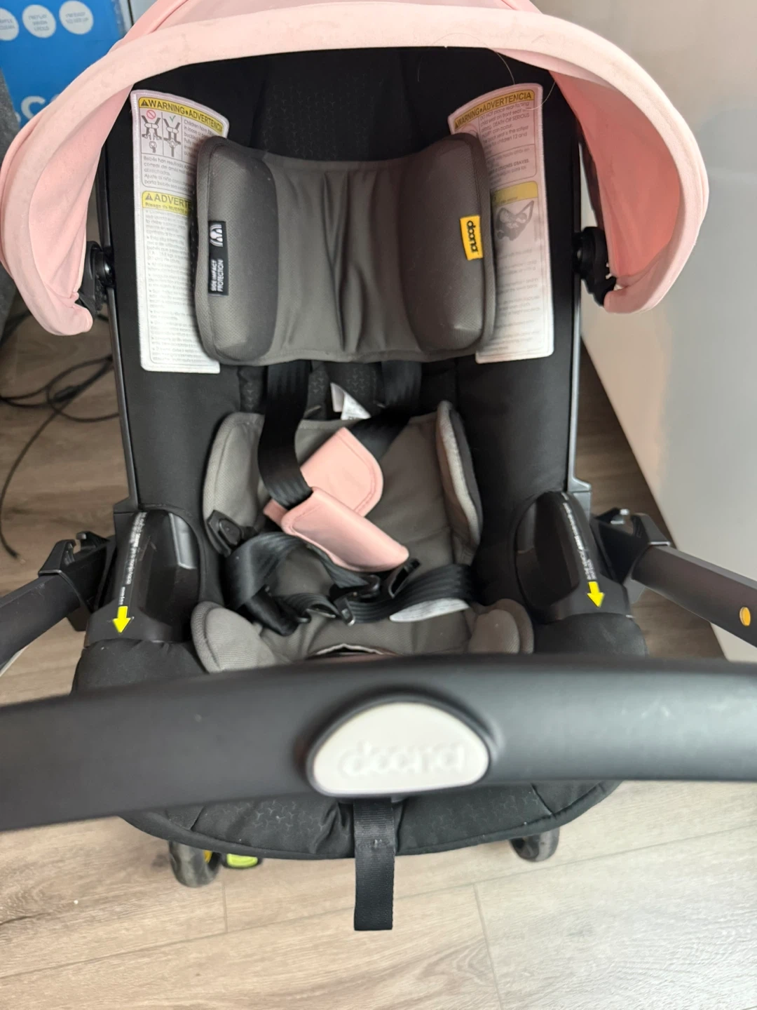 This is a Doona+ infant car seat and stroller system. It's designed for travel and easy transitions. It includes the car seat and base for secure installation.