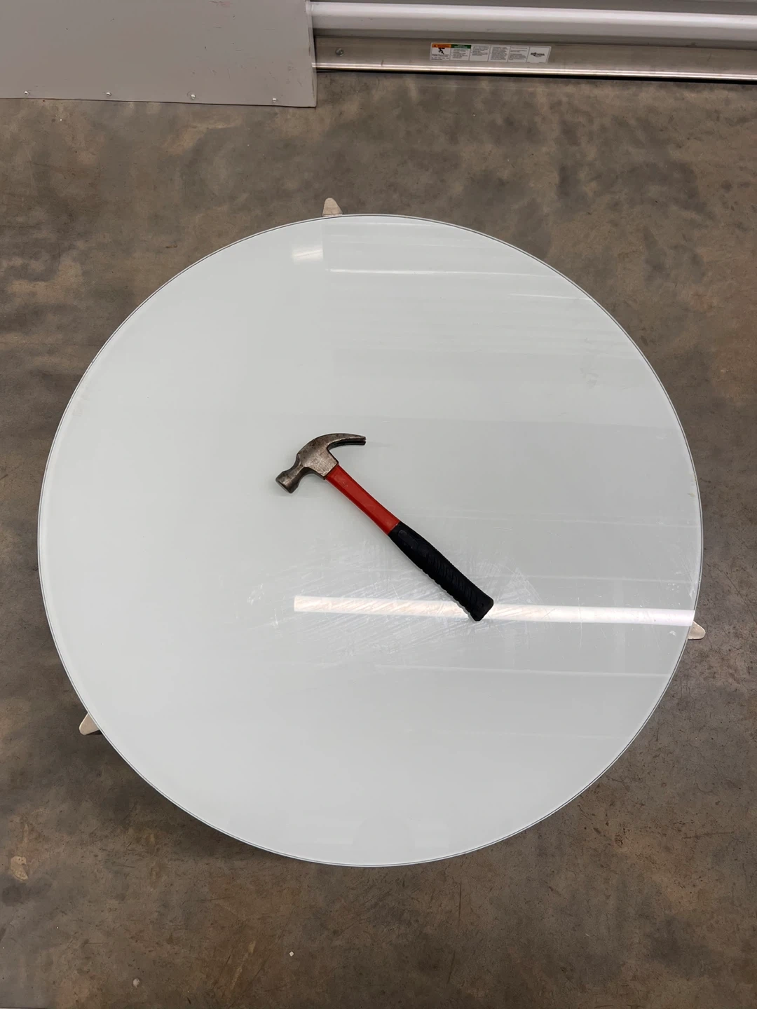 This round glass coffee table features a sleek white top and a second shelf for extra storage. It's designed with a modern metal frame and has wheels for easy movement. The glass material makes for a durable and stylish addition to your living space.