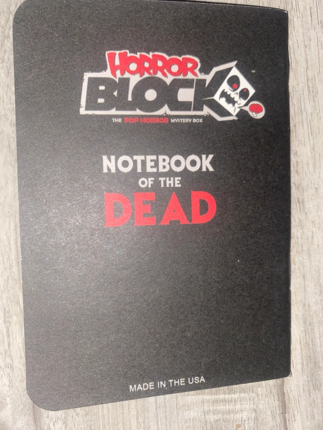 This is a Notebook of the Dead from Horror Block. It features a unique, distressed cover design inspired by horror themes. It's perfect for jotting down notes or sketching out your next spooky idea!