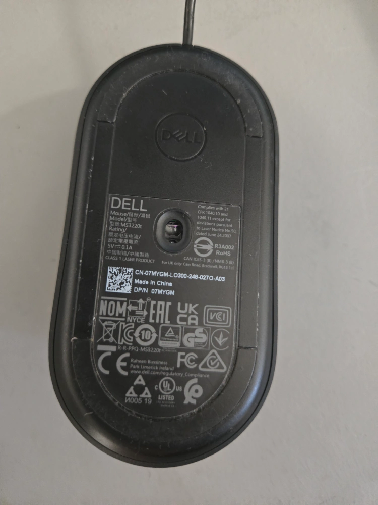 This is a black wired optical mouse from Dell. It's designed for reliable everyday use. The mouse connects via USB for easy setup.