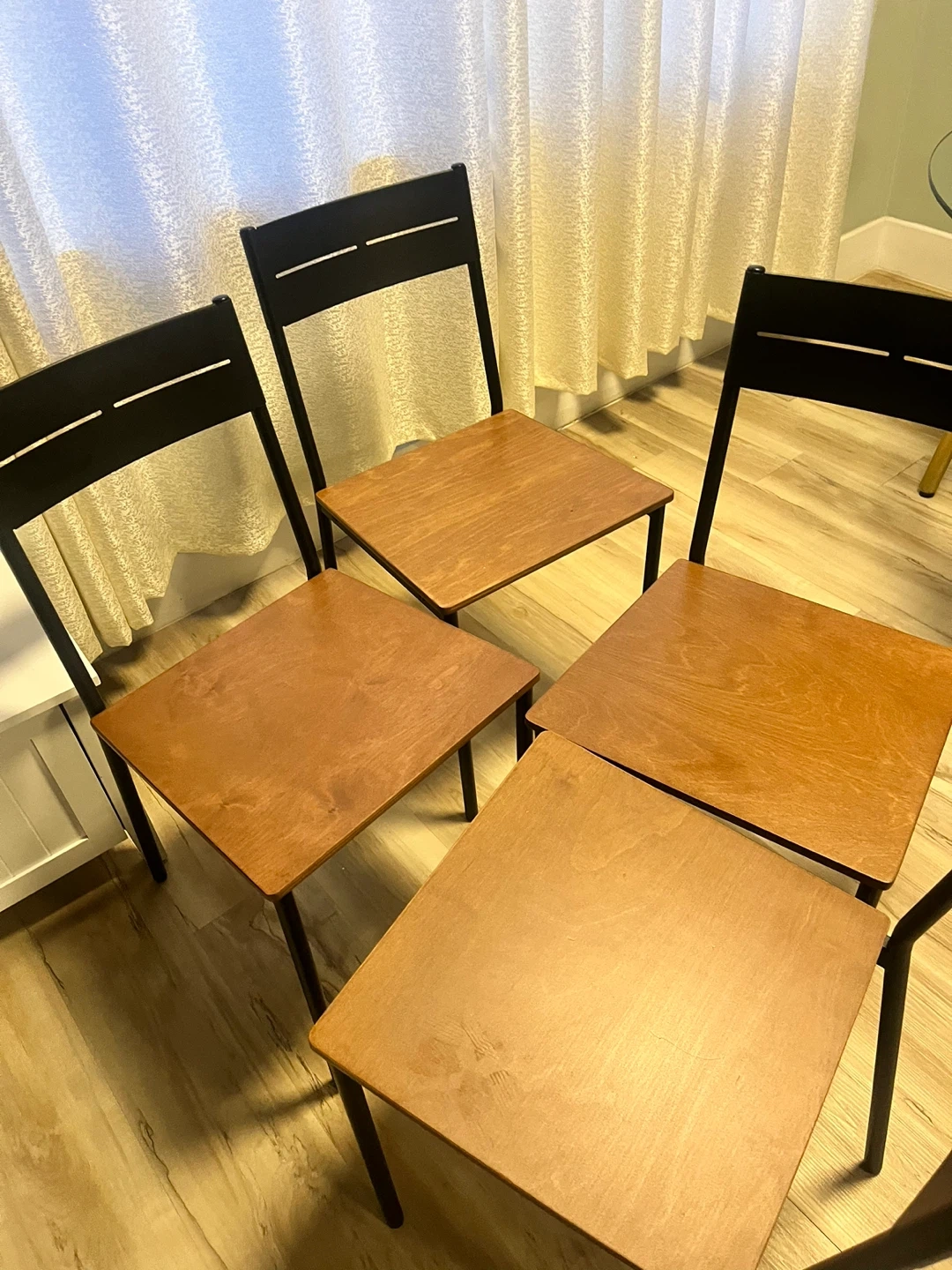 4 metal and wood chairs $120