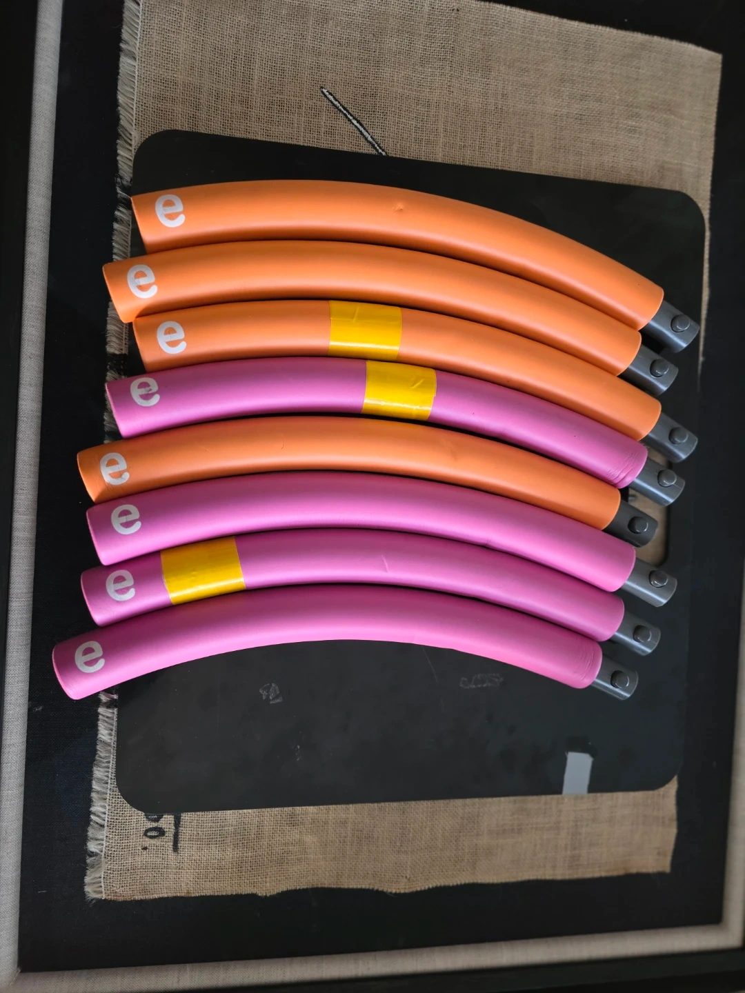 This is an Empower Fitness weighted hula hoop, designed for exercise. It comes in sections for easy assembly. The hoop's colour combination is pink and orange.