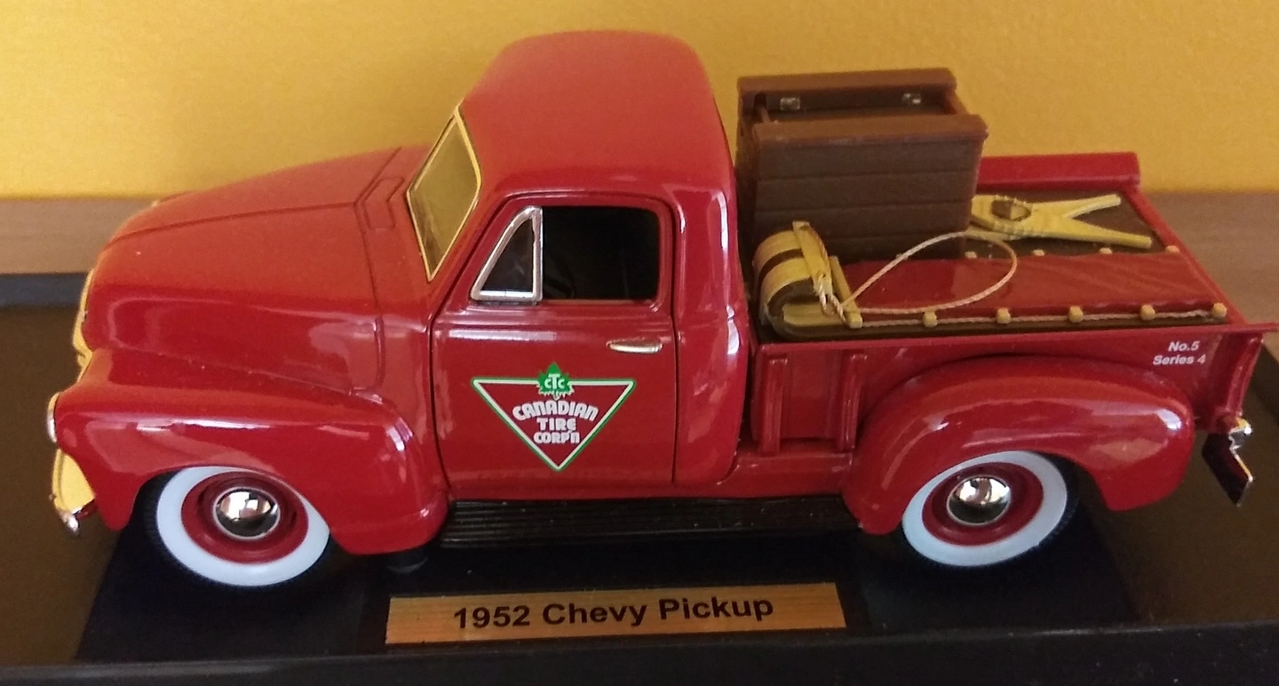 Selling a 1952 Chevy Pickup diecast model in red, branded with the Canadian Tire Corporation logo. It's a No. 5 Series 4 collectible from 2011. A great piece for any diecast collector or Canadian Tire enthusiast!