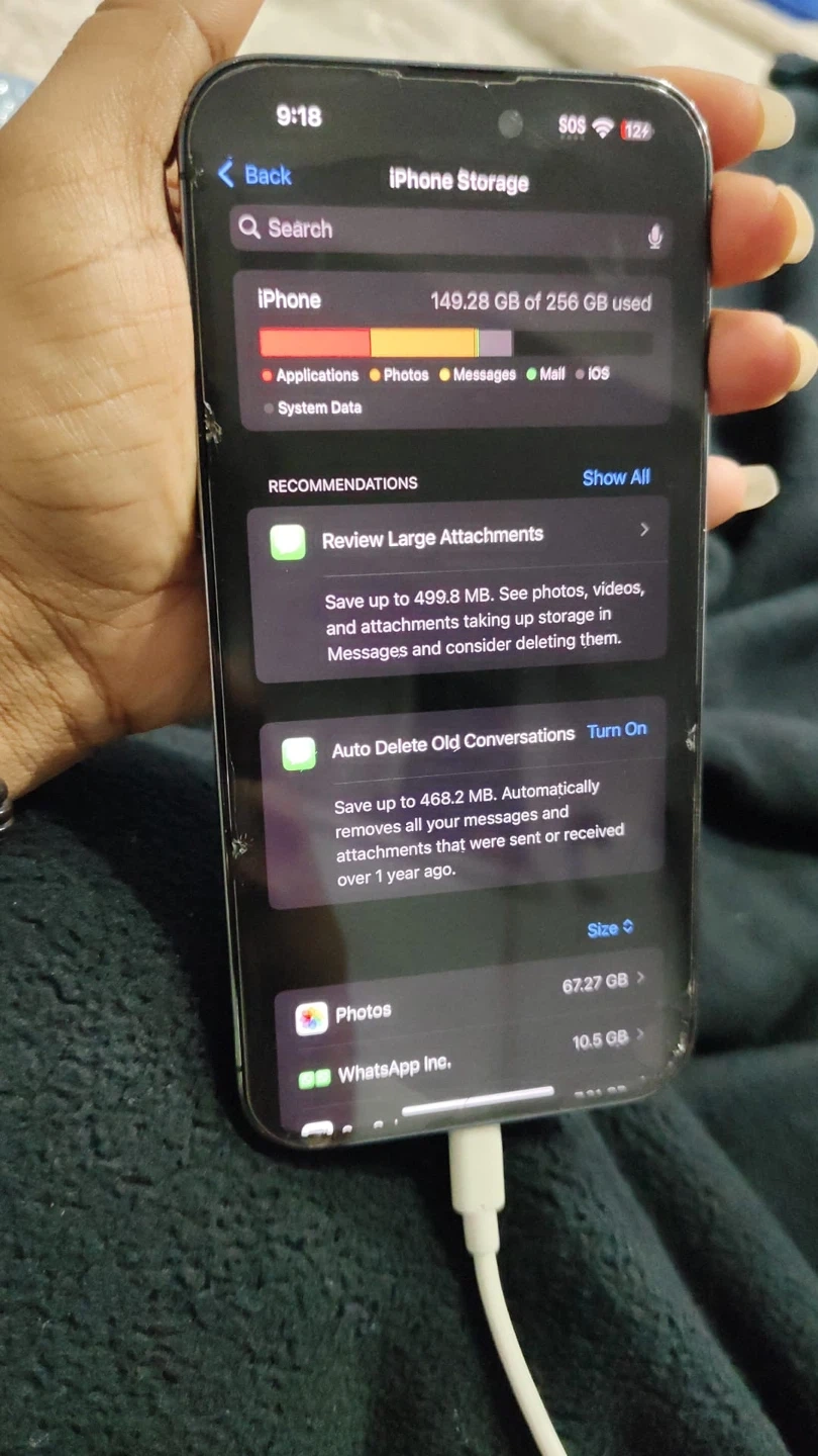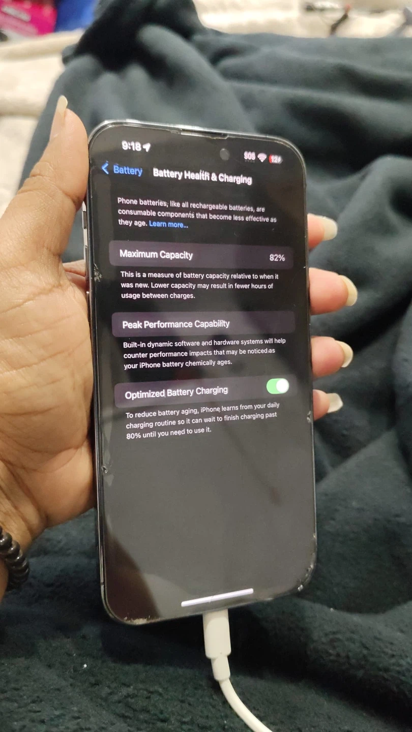 This is an Apple iPhone 14 Pro in a dark purple colour. It's a smartphone with a powerful camera system and a sleek design. The screen is a vibrant display, perfect for all your apps and media.
