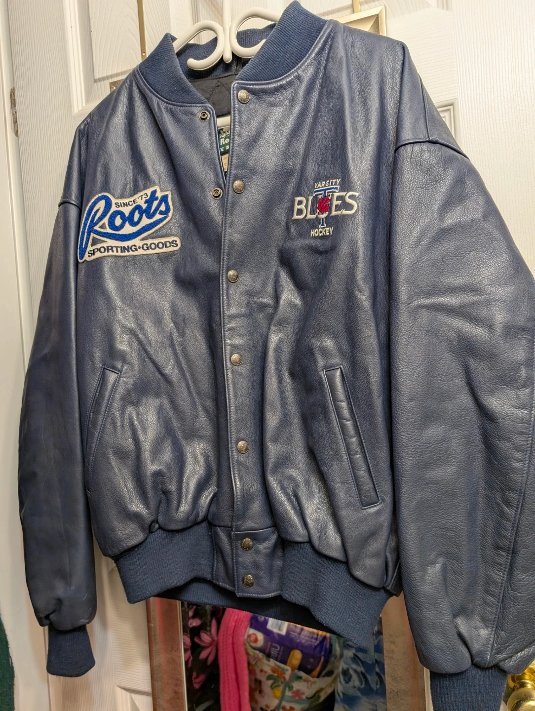 Roots Varsity Blues Hockey Leather Jacket Large-XL
