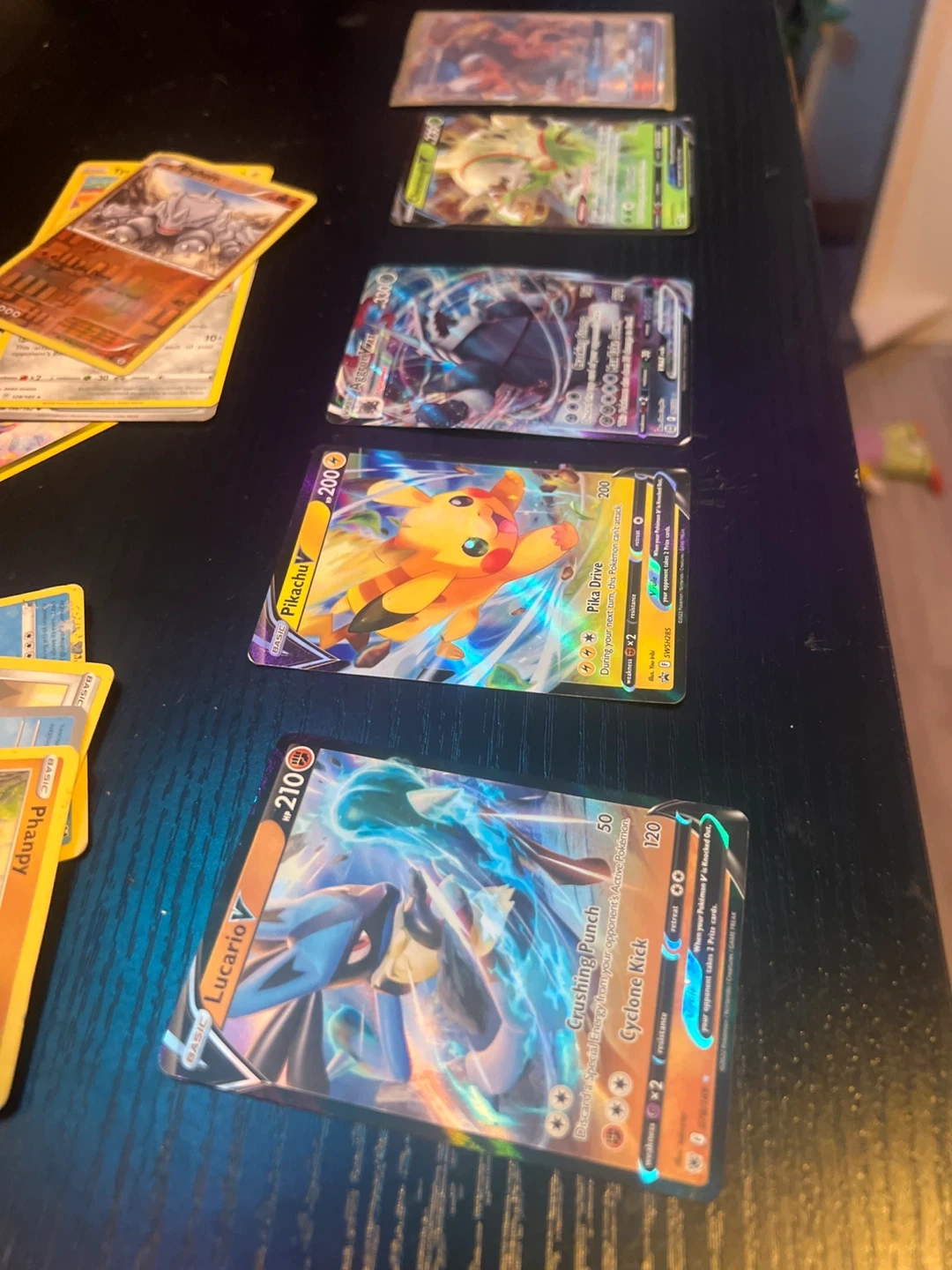Pokémon Trading Cards - Lucario V, Pikachu V, and others