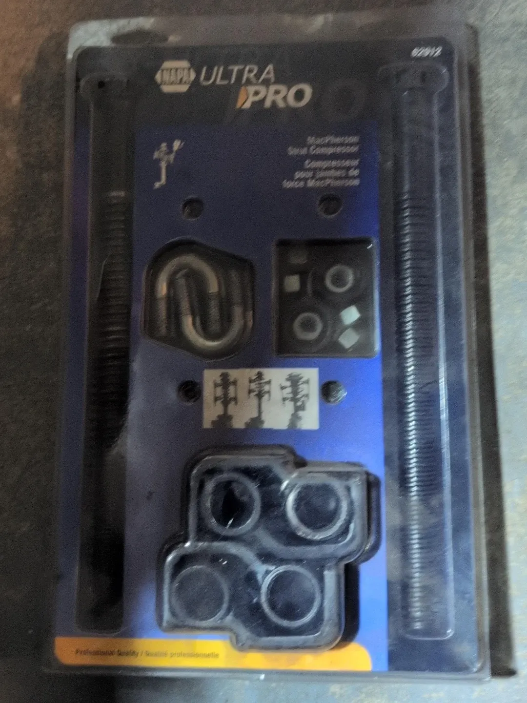 This NAPA ULTRA PRO MacPherson strut compressor kit is designed for vehicle repair. It includes all necessary components for strut removal and installation. Use this tool for reliable automotive maintenance.