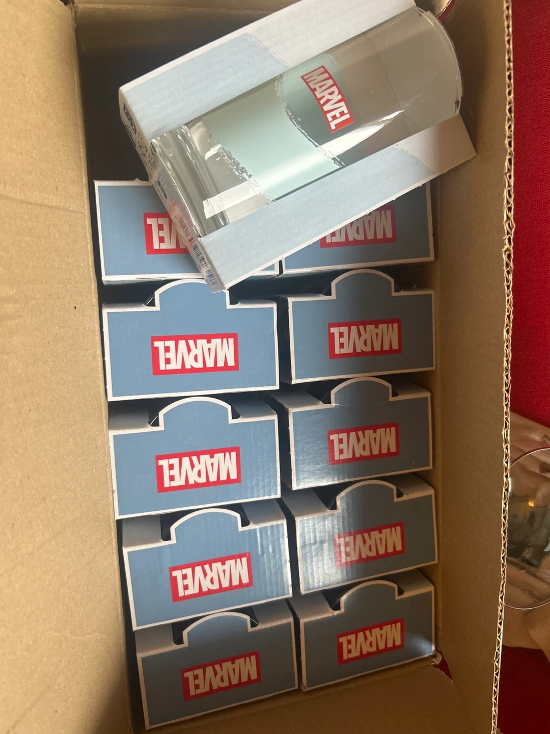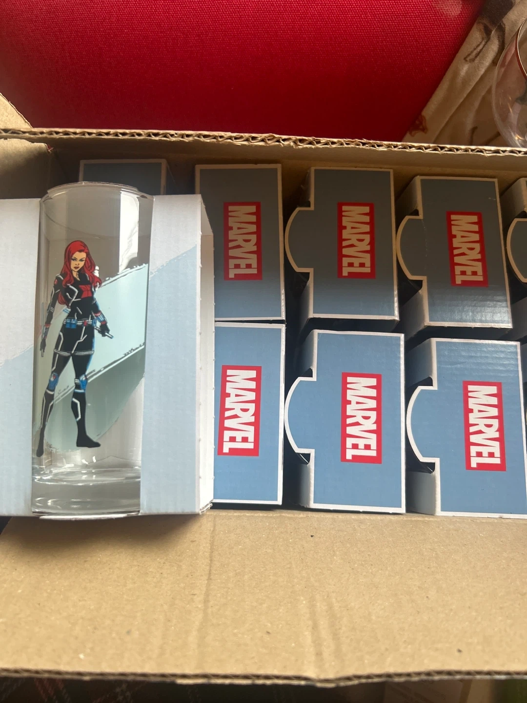 This is a Marvel glass featuring Black Widow. It's part of a set with other characters. Comes in original packaging. 12 cups, unopened!