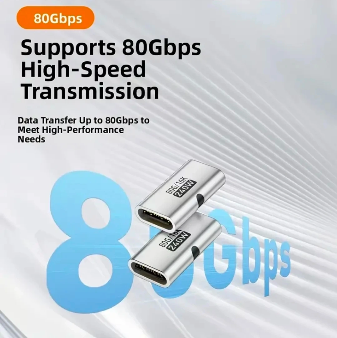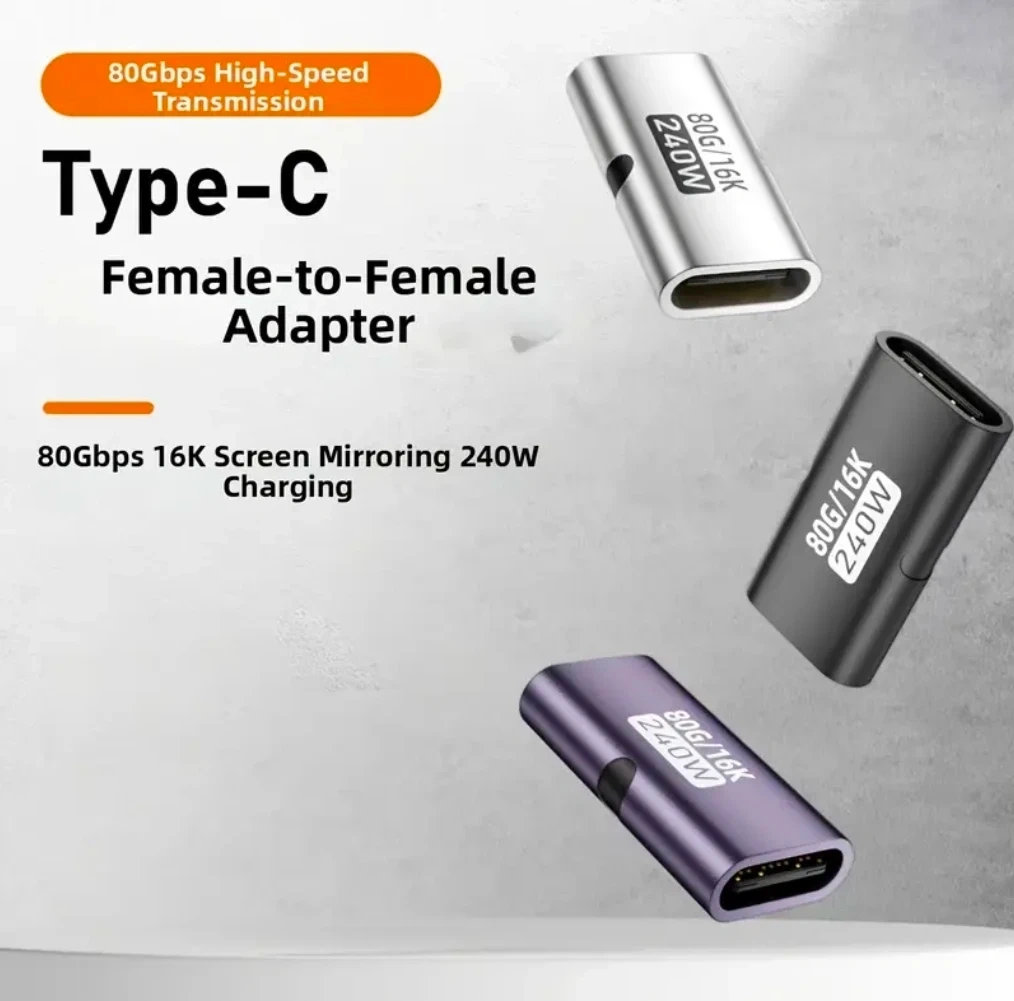 USB C female to female adapter - fully compliant with Thunderbolt 4 USB4 and Thunderbolt 5 cable standards, supporting up to 240W power output, 80Gbps data transfer, and 8K@60Hz video output, providing you with a faster and more efficient experience. Backward compatibility is supported. USB C coupler - a USB C extender that connects two shorter USB C cables. It can help you extend the length of USB-C cables for quick charging, data transfer, or video transmission. Note: Performance may degrade if the total length exceeds 2 meters. Wide compatibility: This USB-C female to female adapter is suitable for most Type-C devices. The USB-C to USB-C adapter is compatible with iPad, MacBook, Thunderbolt 5, Thunderbolt 4/3, MacBook Pro, Chromebook, Surface Book, USB-C hubs, Google Pixel, gaming consoles, PD fast charging hard drives, and more. The USB-C female to female adapter is plug-and-play, requiring no drivers; just plug it in and use it. The USB C coupler has a compact design with a sturdy aluminum alloy casing. It is portable and easy to carry. It is fingerprint and scratch resistant. It is perfect for various occasions at home, in the office, in the car, or while traveling.