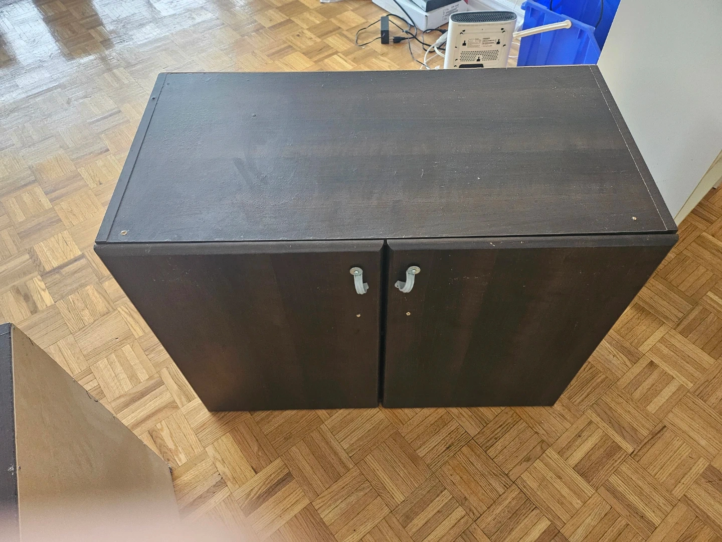 I have 1 floor cabinet, take for free. Good for storing clothes, shoes, etc. 32" l ×17" w ×24" h