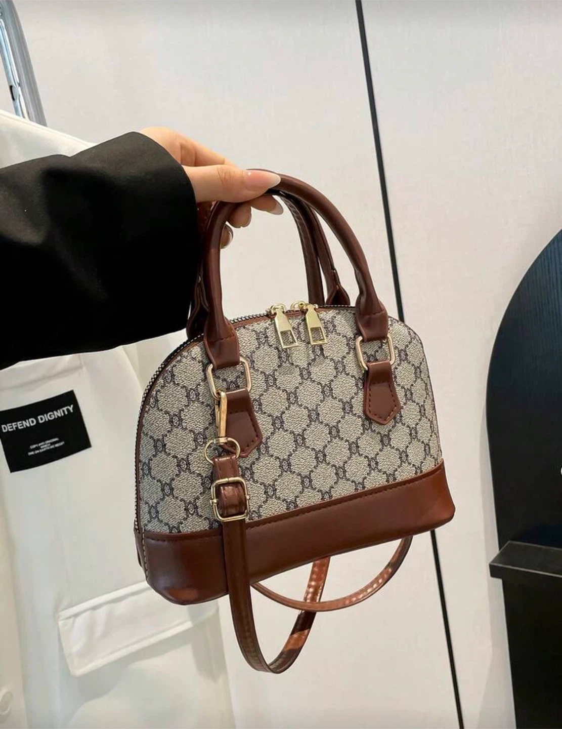 Quilted Double Handle Round Top Bag, Simple Design Zipper Shoulder Bag, Solid Color PU Leather Crossbody Bag, Portable Top Handle Handbag