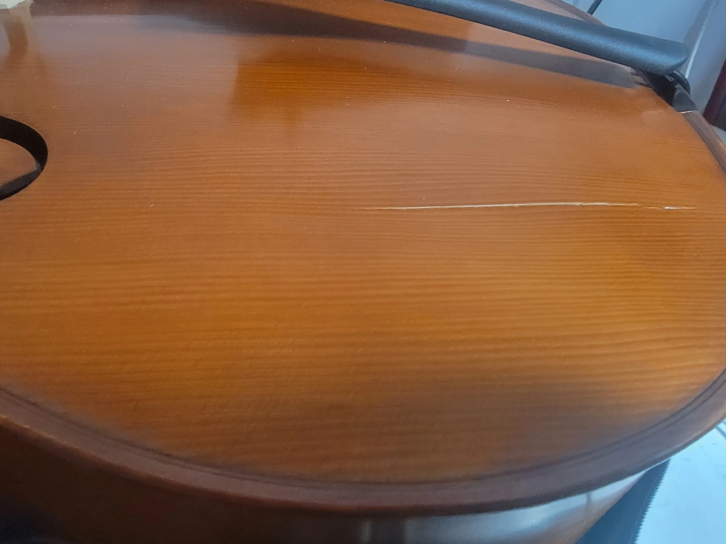 Has a hairline crack on outside of top plate that doesn't effect it what so ever