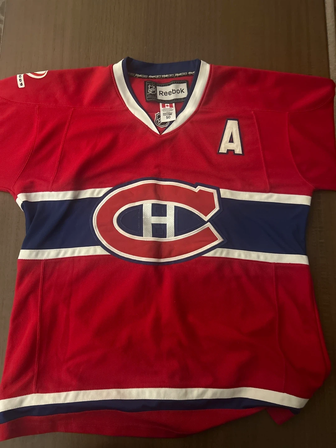 This is a red Reebok Montreal Canadiens hockey jersey featuring Cammalleri and the number 13. It has the team's iconic "CH" logo on the front and an "A" for alternate captain. A classic jersey for any hockey fan! Smoke free home.