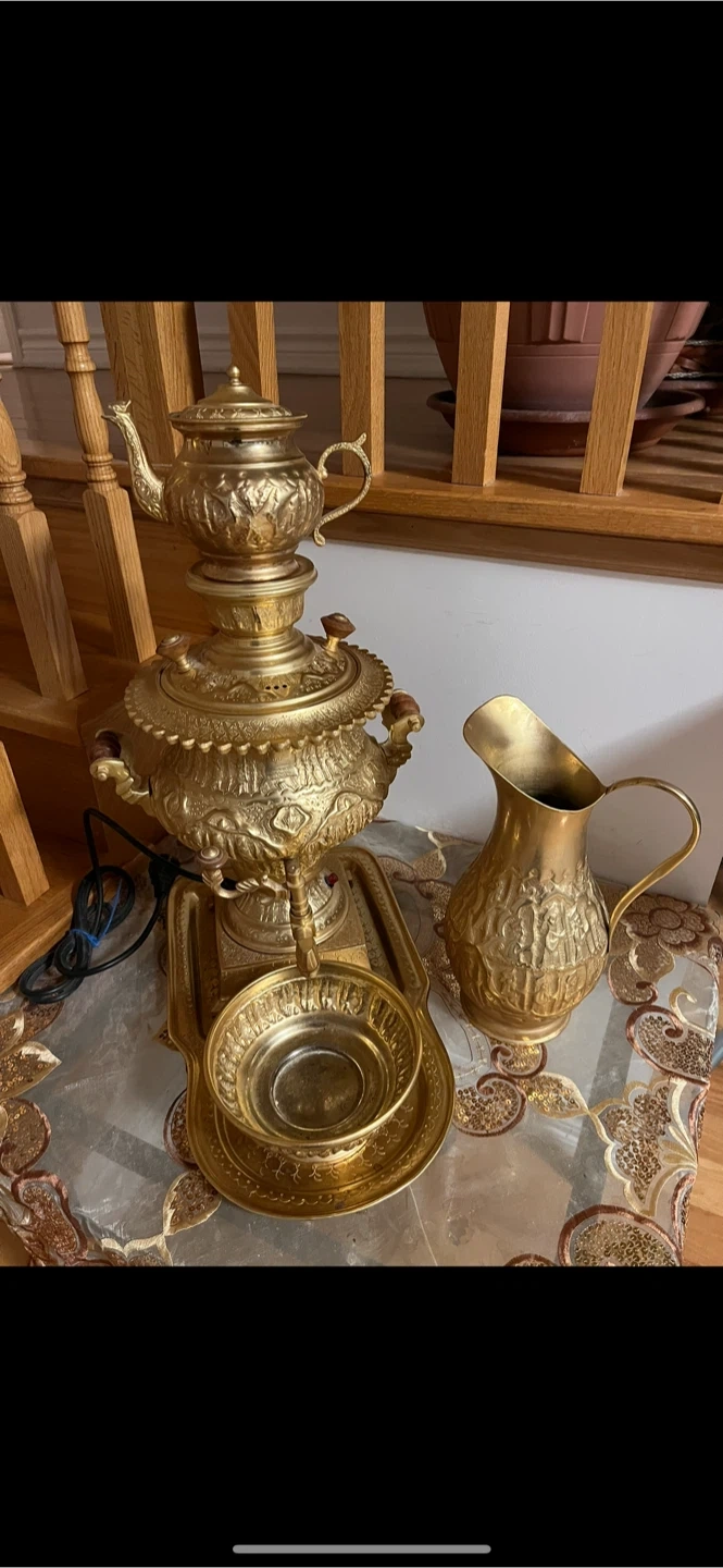 Decorative Brass Samovar Set with Pitcher and Bowl