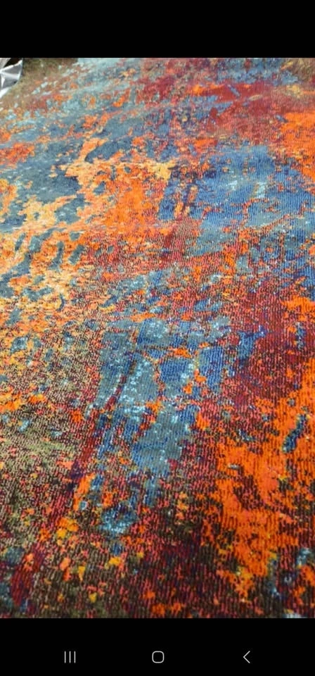Create an eye-catching base for your stylish space with this Velva blue/red abstract rug, showcasing saturated shades of red and blue that swirl and blend together. Machine-made in Turkey, this rug is machine-woven from stain- and fade-resistant polypropylene and has a medium pile height of 0.5 inches. This rug has a durable jute backing and is most effective when used with a rug pad to prevent shifting and slipping.
