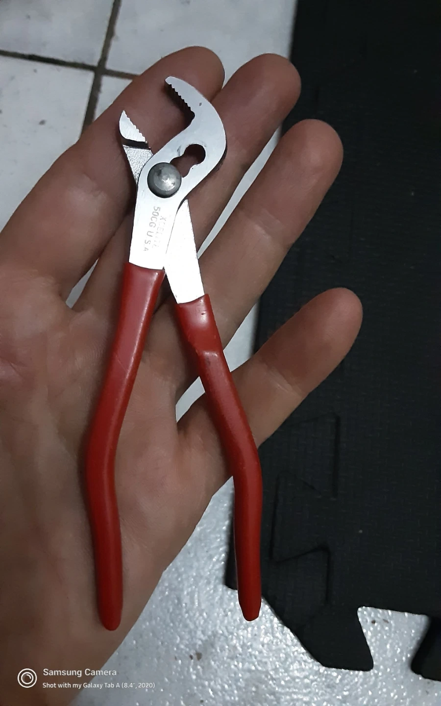 A pair of XCELITE slip joint pliers with red handles. Made in USA. These pliers are handy for gripping and turning various objects.