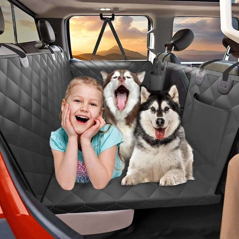 Used like new. ROUWINNE Back Seat Extender for Dogs (Truck). Expands to 59" x 28.7" for full rear-seat coverage, preventing falls and giving dogs more space. Fits full-size crew cab trucks like RAM, F-150, Silverado, Sierra, and Tundra. Heavy-duty hard bottom supports up to 400 lbs, ideal for large, senior, or multiple dogs. Foldable boards allow seating or a child car seat. Made with 7-layer premium materials, double waterproof protection, scratch-resistant surface, and non-slip rubber bottom to keep dogs secure and seats clean. Mesh window improves airflow and reduces anxiety. Includes sturdy straps and two large storage pockets for toys and treats—perfect for safe, comfortable trips.