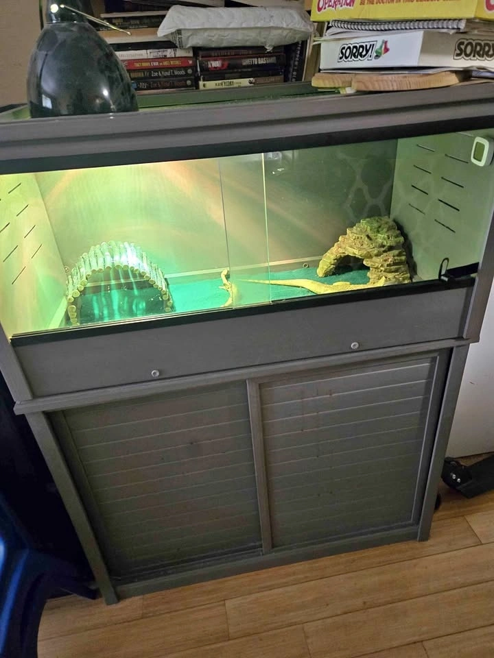 Brand new reptile enclosure and stand with storage space, comes in 2 boxes. Assembly required. I have an extra one. Pick up only!