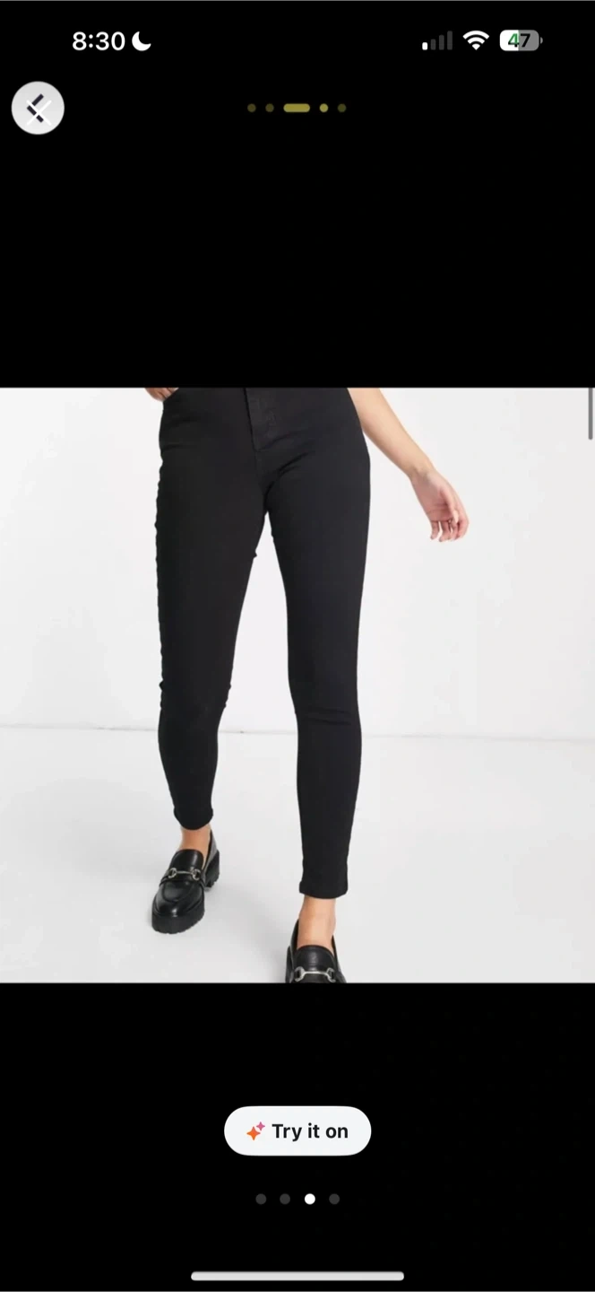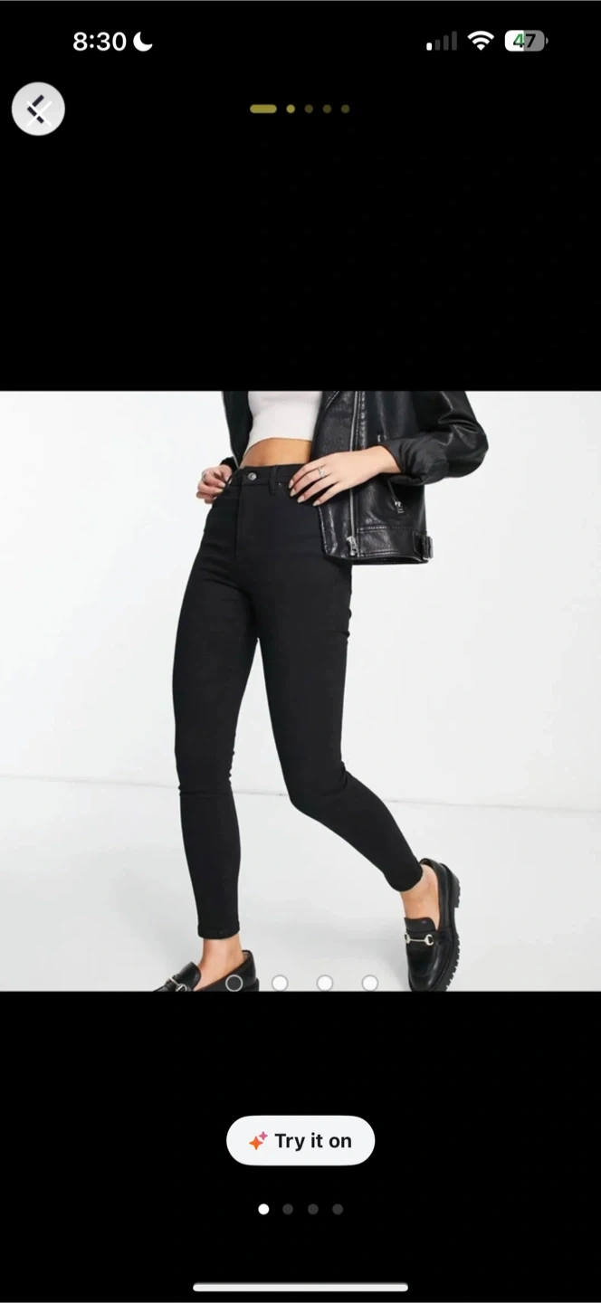 Black Topshop Jamie jeans in size W26 L30. These skinny fit jeans have a high rise and a zip fly. They feature belt loops and five pockets.