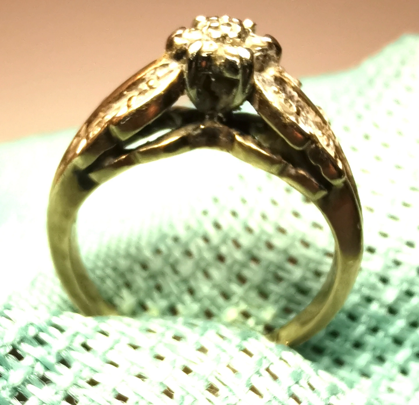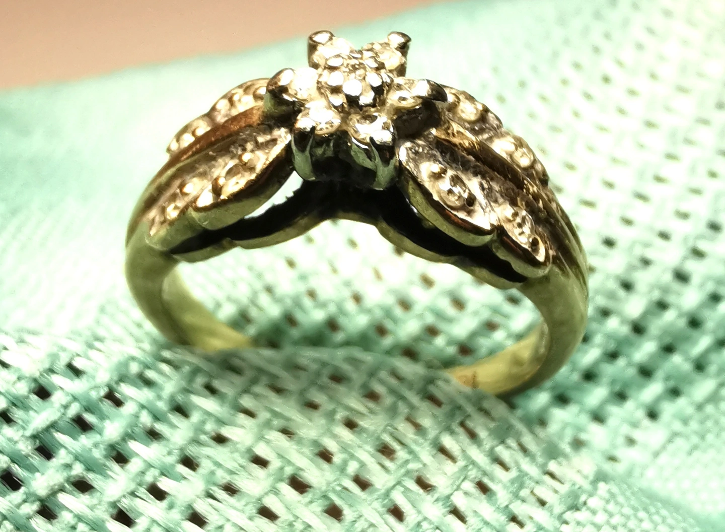 Heavy 3g Vintage 10K Yellow Gold Diamond Cluster Ring Size 4