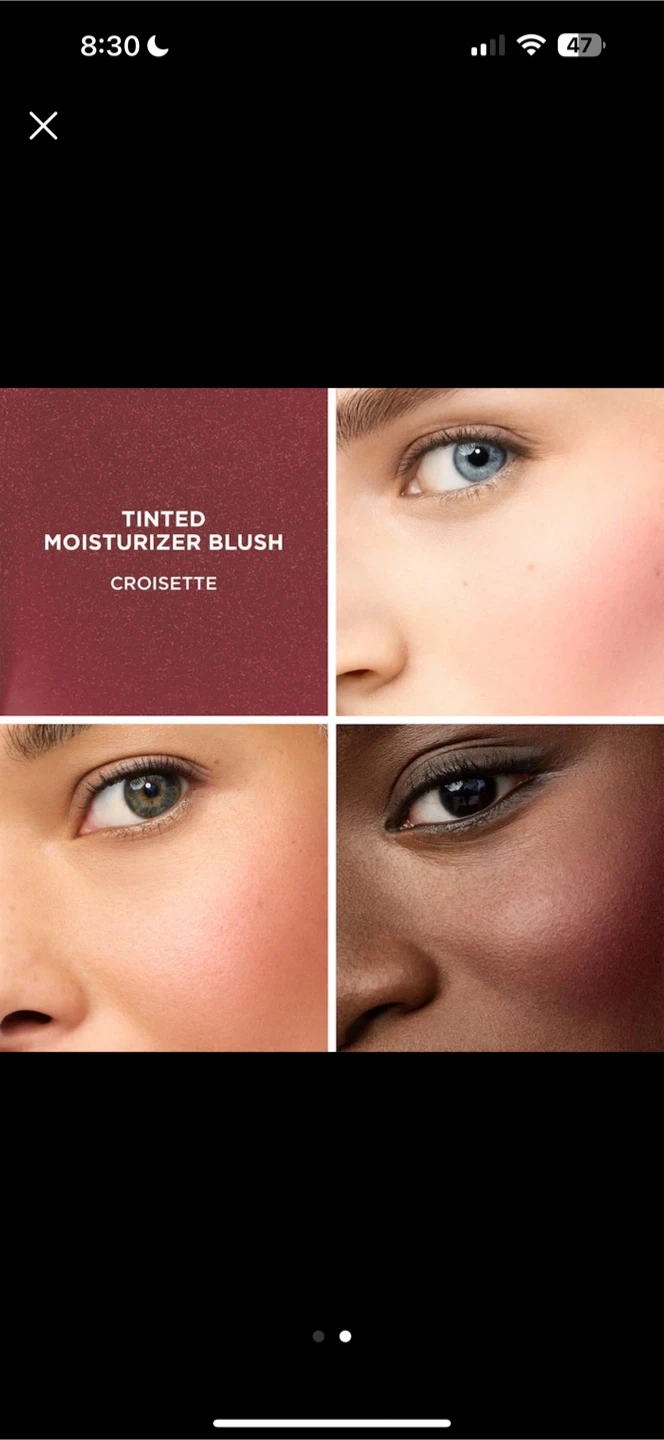 Laura Mercier Tinted Moisturizer Blush in shade Croisette. It's a creamy, blendable formula. Offers a natural-looking flush of colour. This blush is great for adding a subtle glow to your cheeks.
