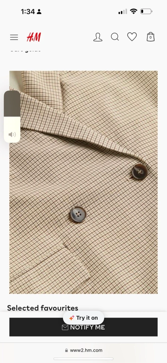 This is a stylish two-piece set from H&M, featuring a houndstooth pattern blazer and a matching skirt. It's a great option for work or a smart casual occasion. The blazer is double-breasted with a classic lapel. The skirt is a mini length.