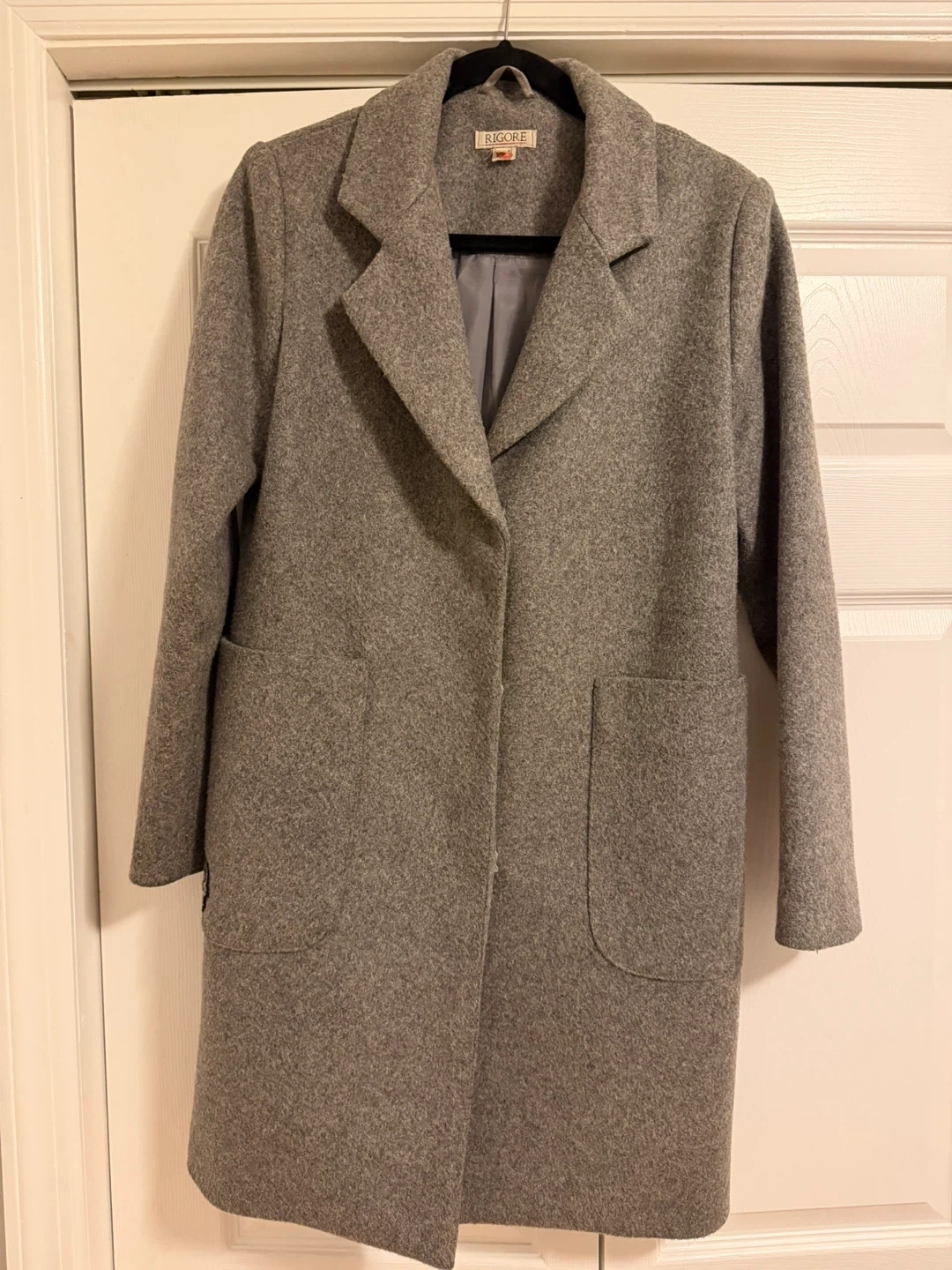 RIGORE Women's Grey Wool Blend Coat with Sequin Patch
