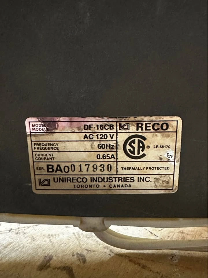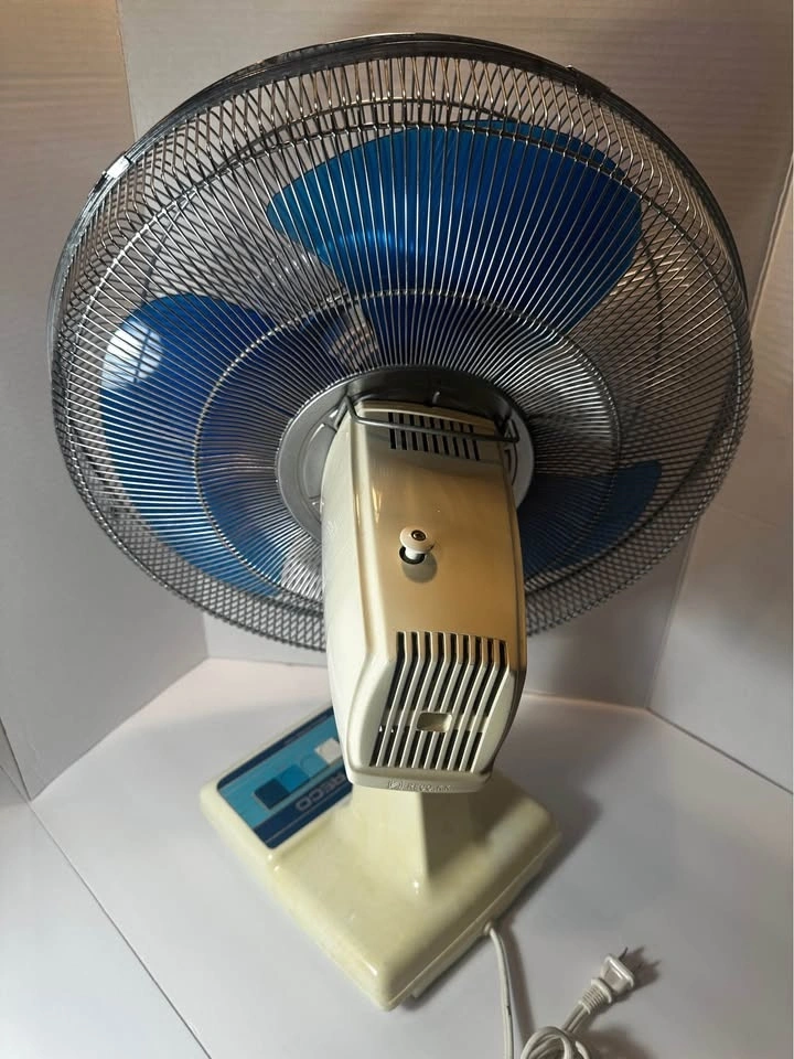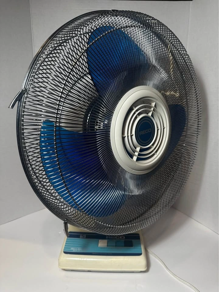 Beautiful vintage RECO oscillating table fan, made in Canada by Unireco Industries. This is a solid, well-built fan from the late 1970sβearly 1980s, not a modern lightweight plastic unit.