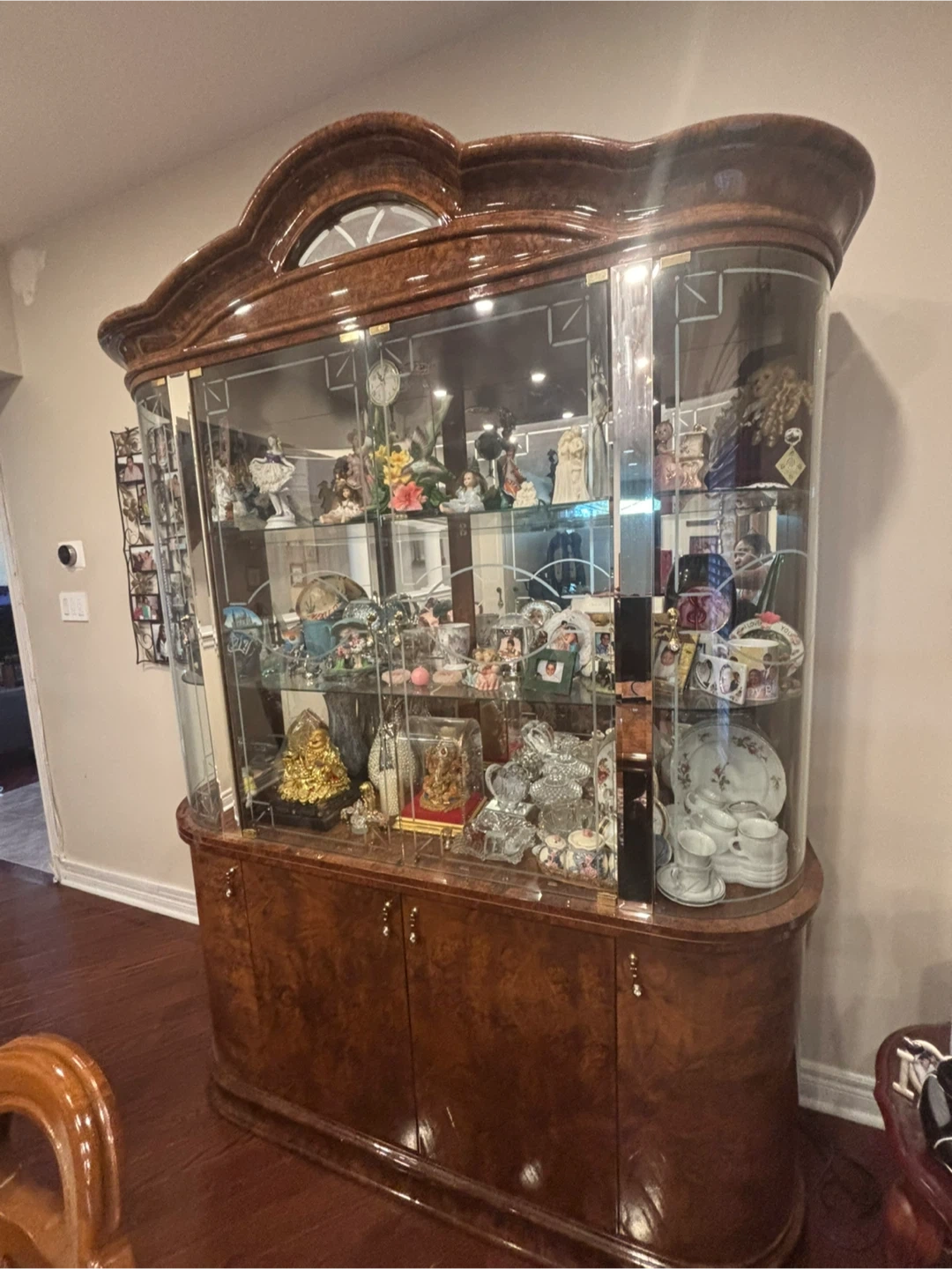 Oval Dining Table with 6 Chairs and Curio Cabinet