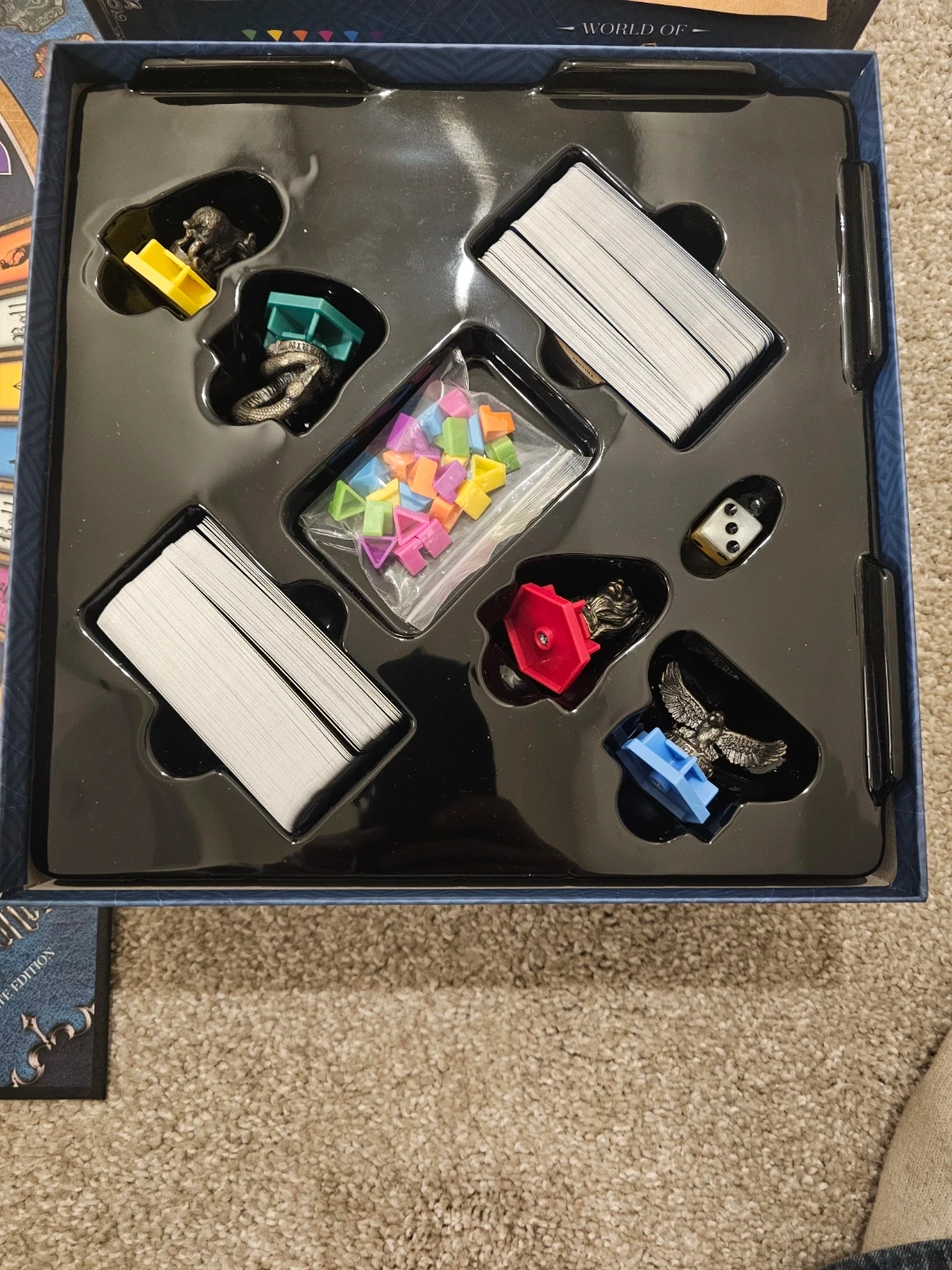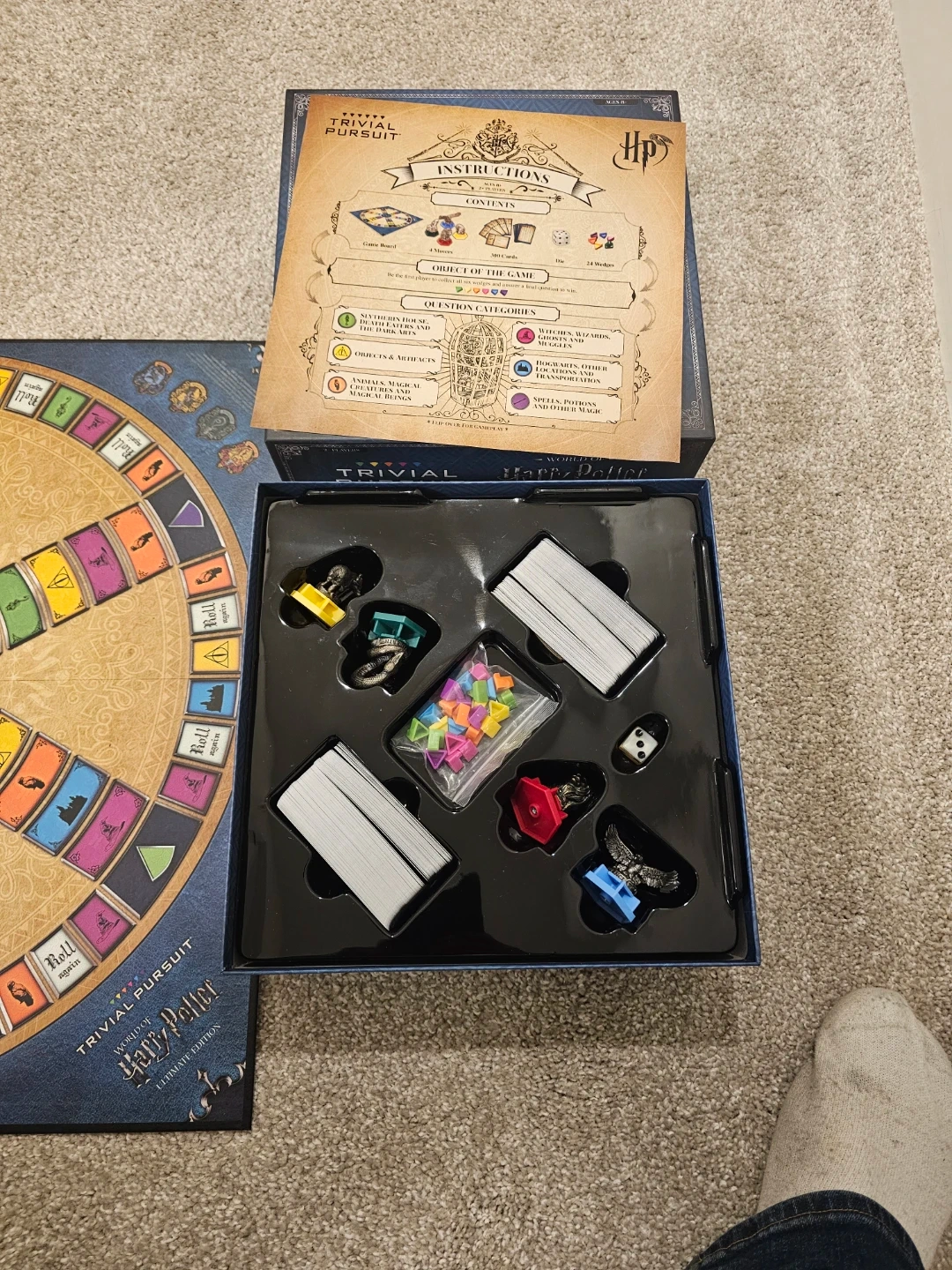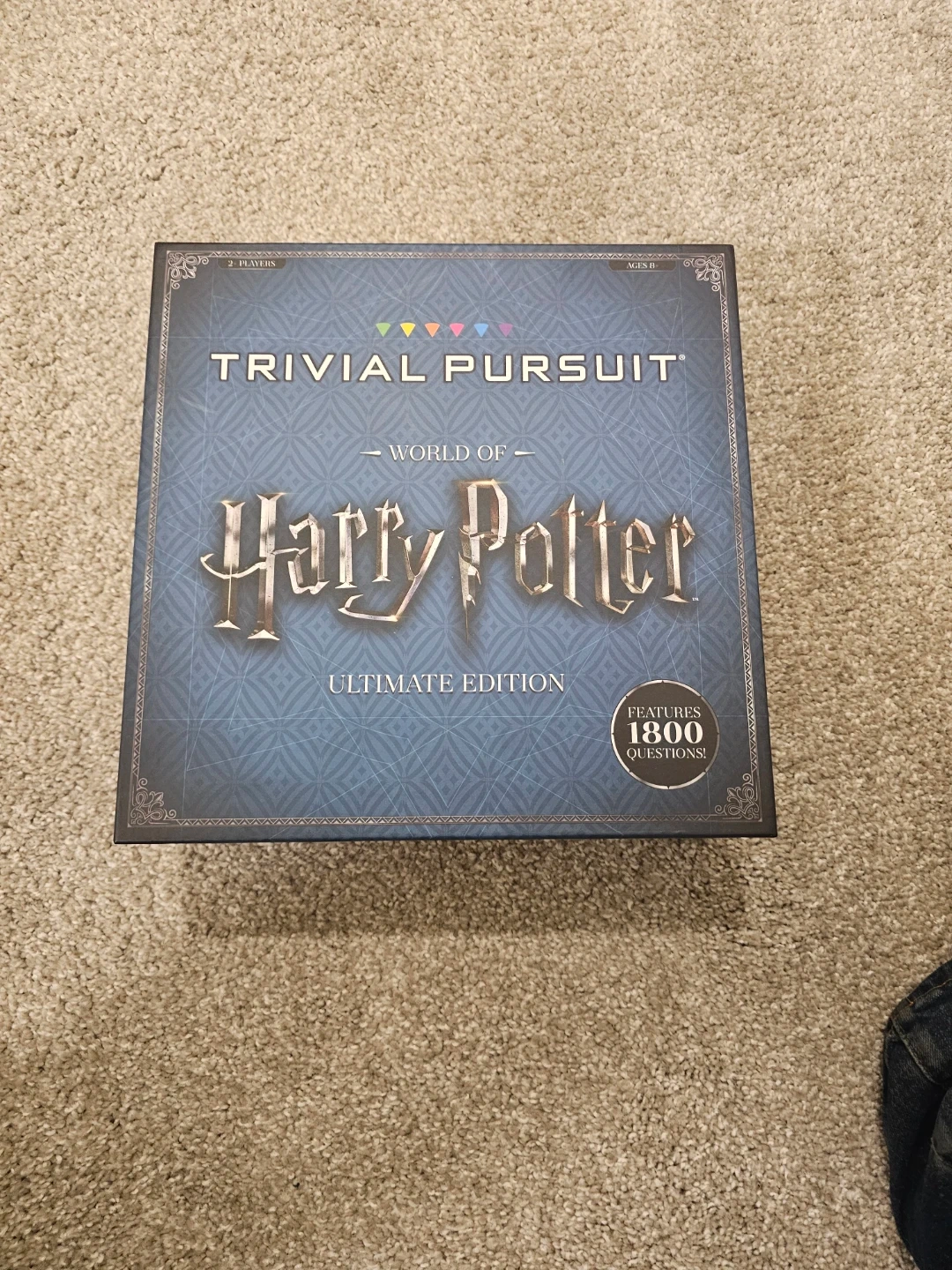 This is the Trivial Pursuit World of Harry Potter Ultimate Edition board game. It features 1800 questions for fans of the Wizarding World. Includes game board, wedges, cards, and die. Great for Harry Potter trivia nights!