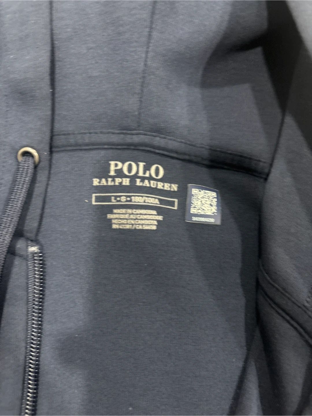 Navy blue Polo Ralph Lauren full zip hoodie. Size L-S (180/102A). Made in Cambodia. It's a comfortable layering piece.