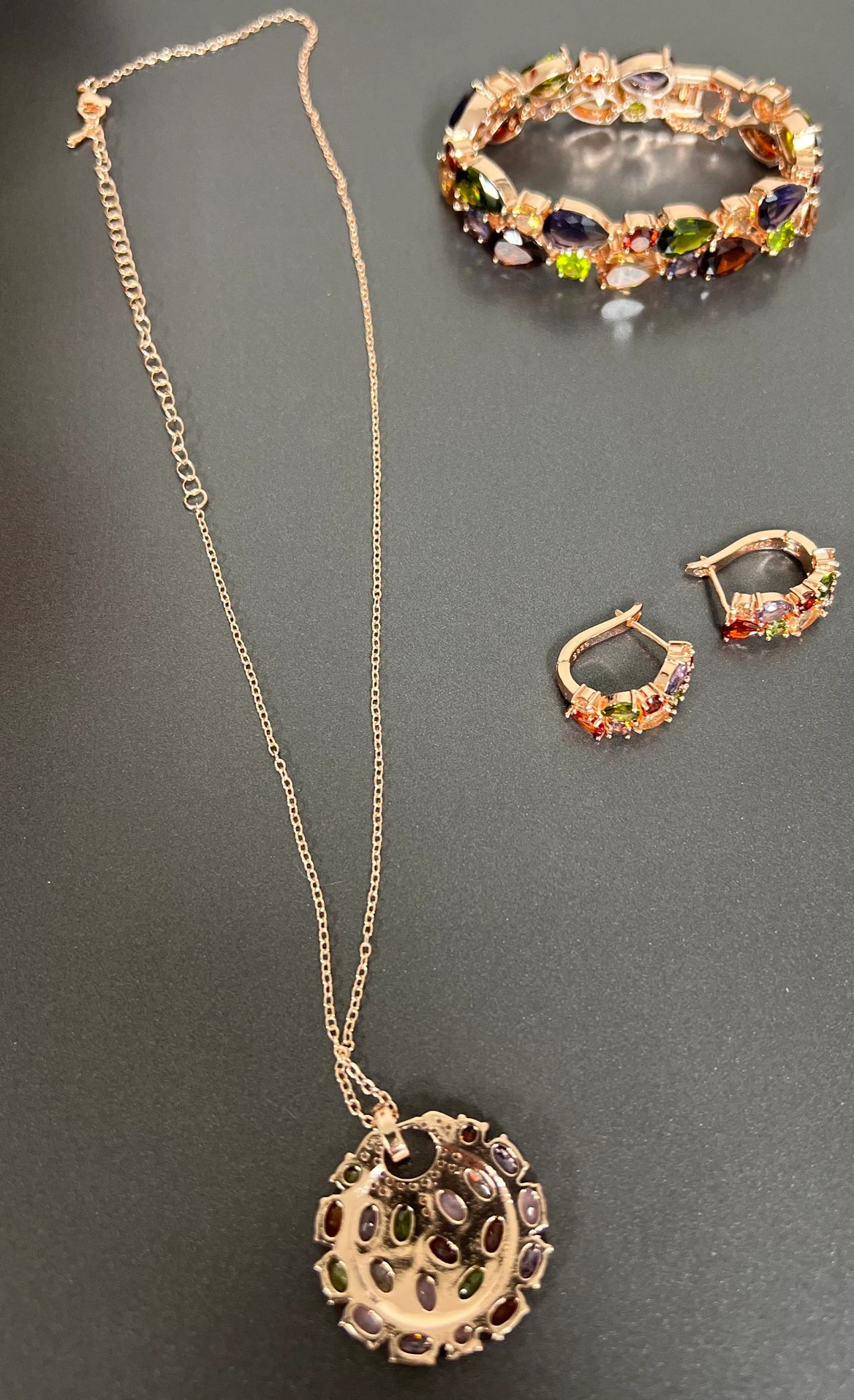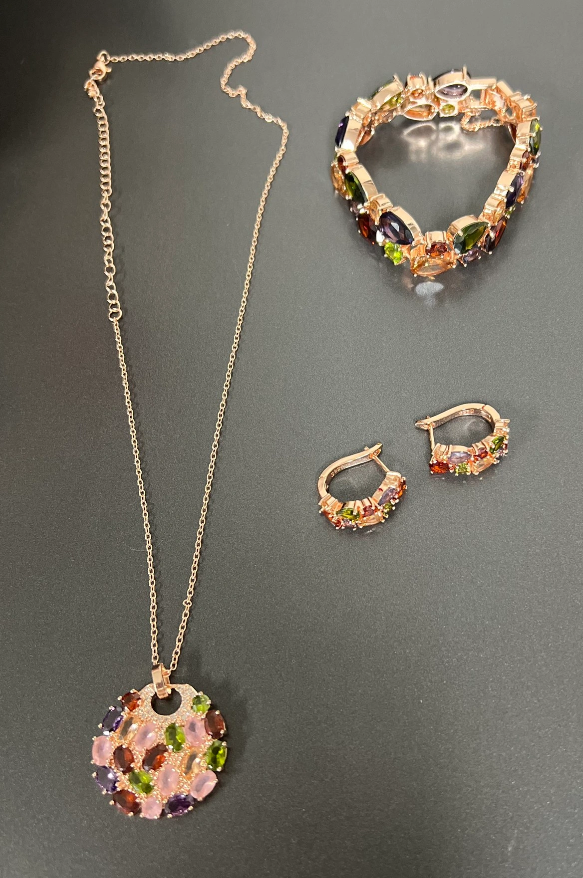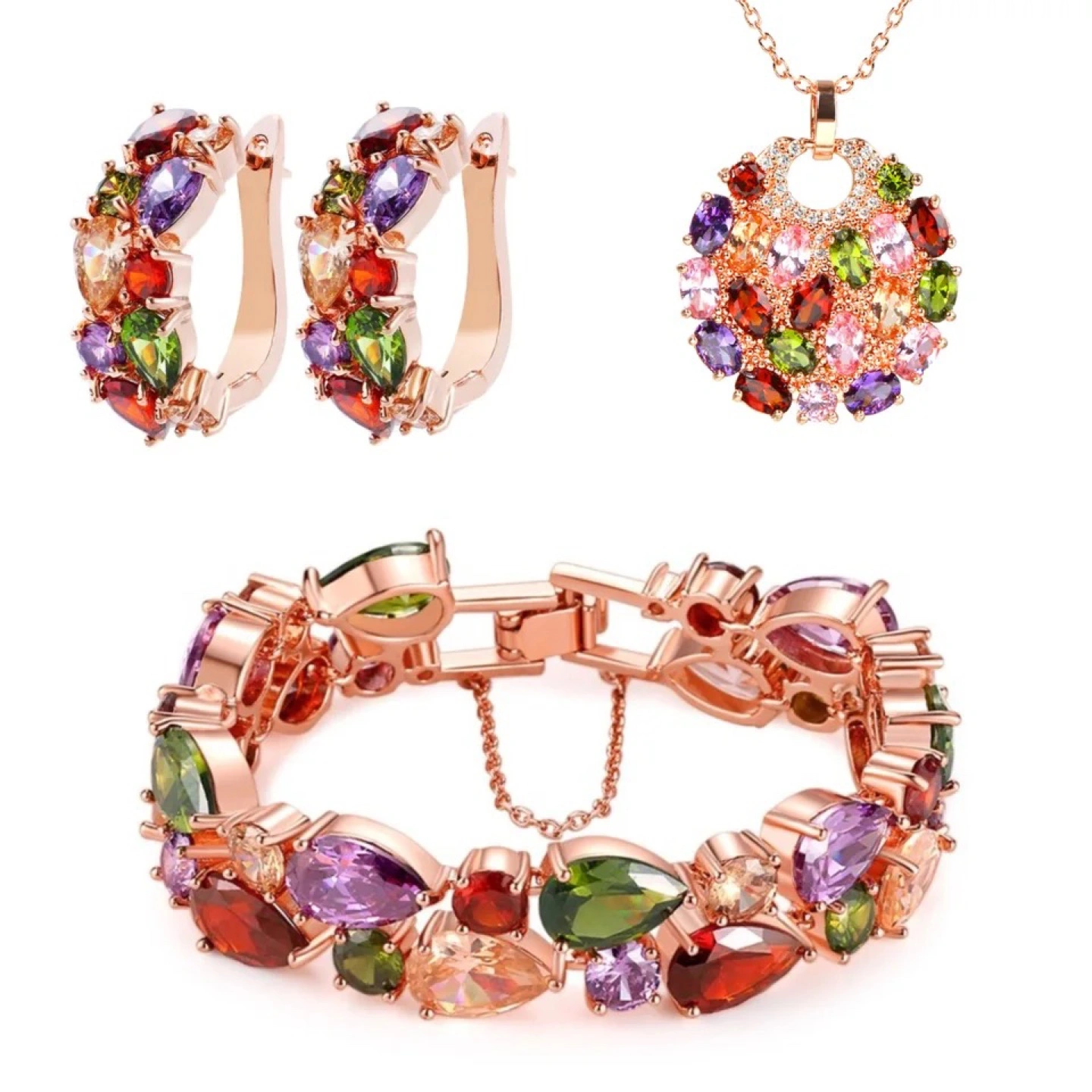 Rose Gold Color Multi Cubic Zirconia Charming Jewelry Set For Elegant Women