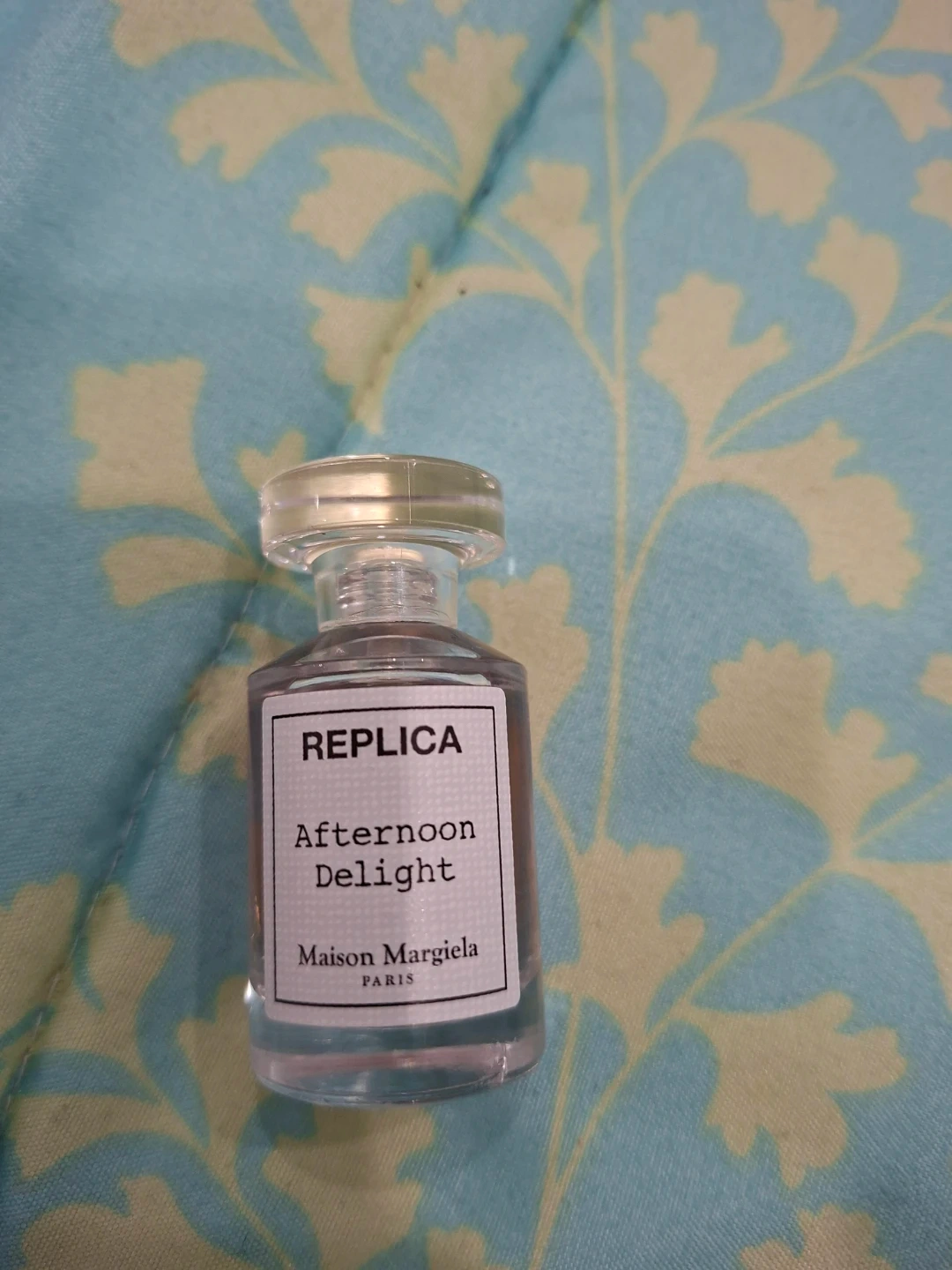 This is a 7 ml bottle of Maison Margiela Replica Afternoon Delight fragrance. It's a unique scent designed to evoke specific memories. A wonderful addition to any perfume collection!