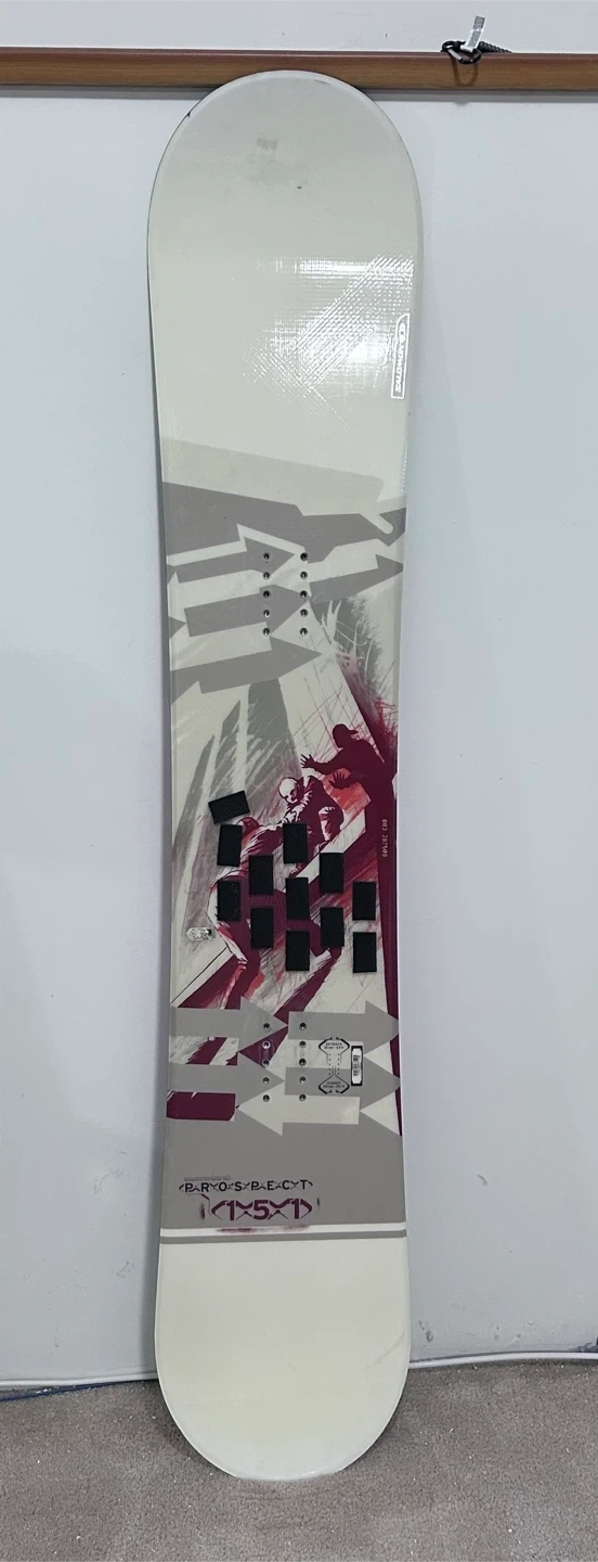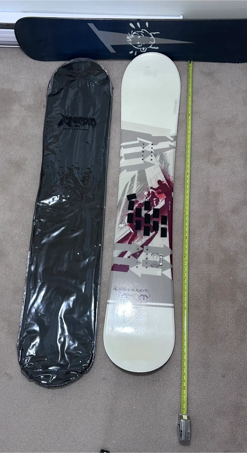 This is a Never Summer Prospector snowboard. It includes a snowboard bag. The snowboard measures 151cm in length.