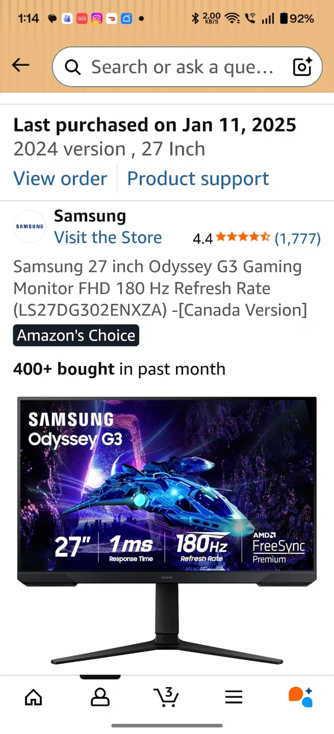 This Samsung Odyssey G3 gaming monitor features a 27-inch display with a 1ms response time and 180Hz refresh rate. It's a 2024 version with FHD resolution. Gamers will appreciate its high refresh rate for smoother gameplay.