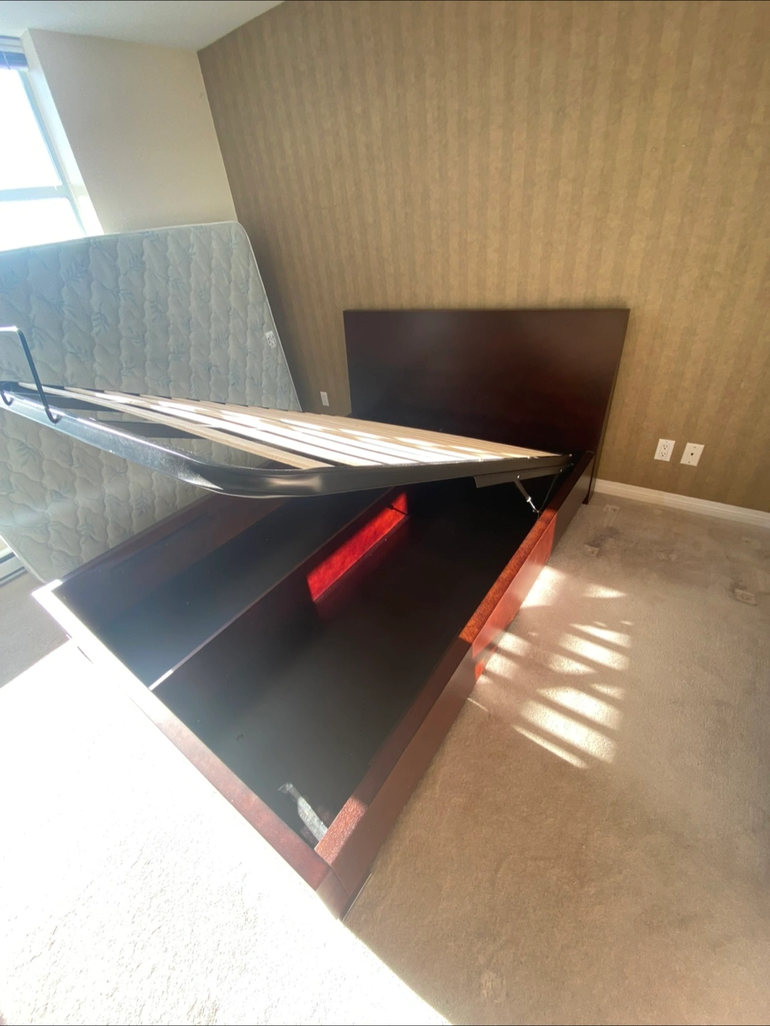 Mobital Queen Storage Bed Frame with Dark Wood Finish