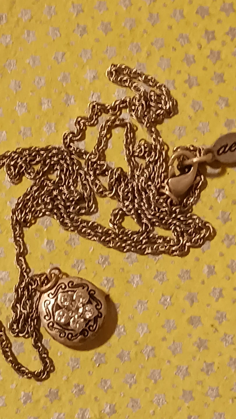 This charming locket necklace features a floral design accented with sparkling rhinestones. It hangs on a delicate silver - toned chain. A lovely accessory for any occasion! American Eagle!