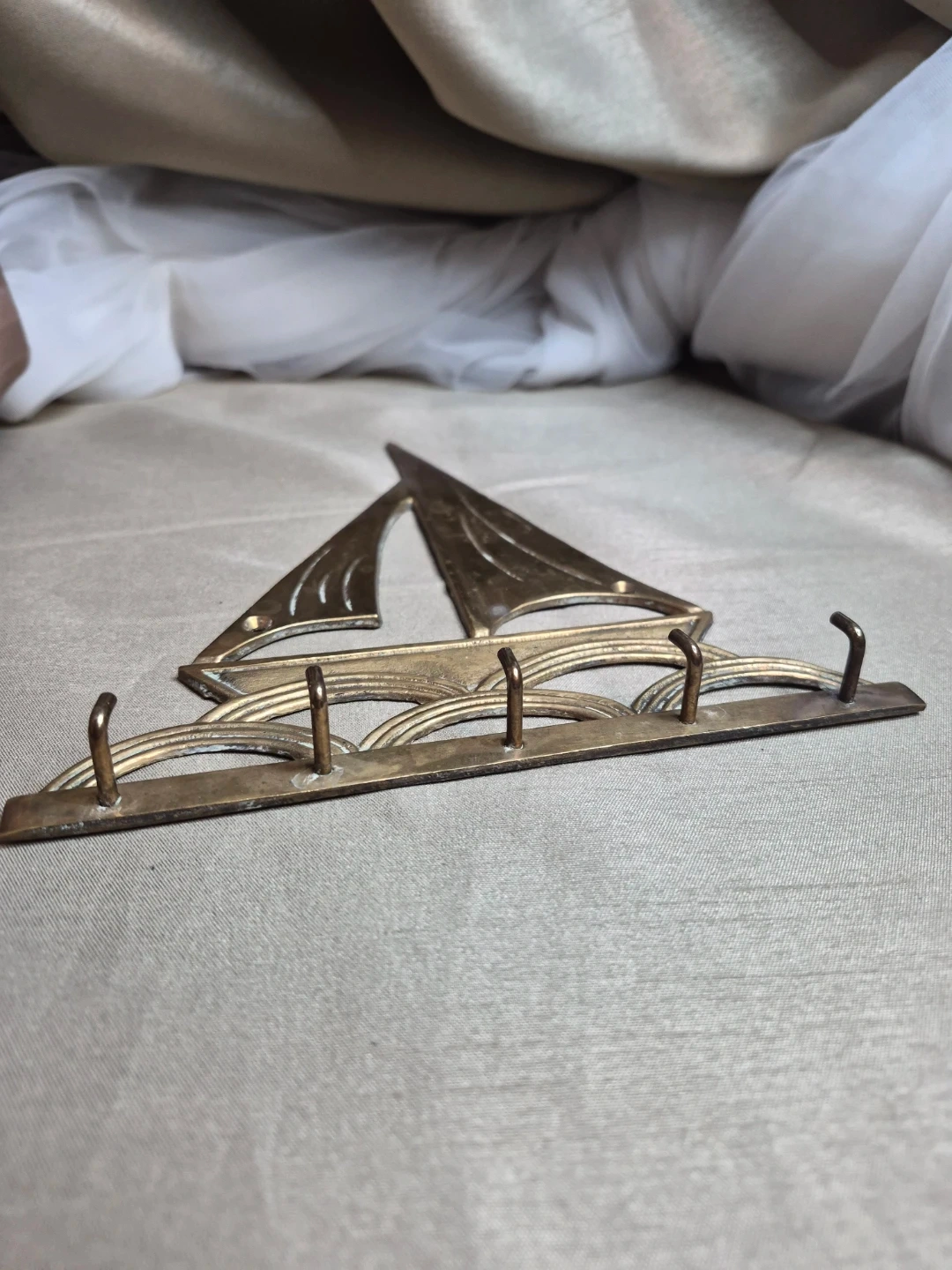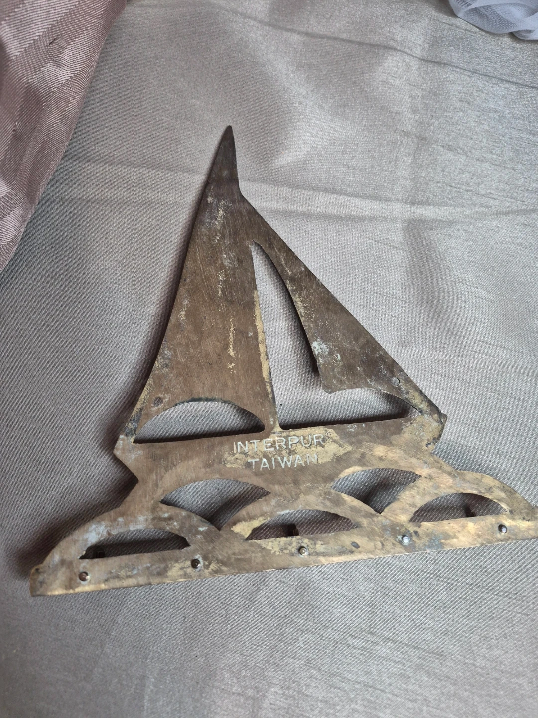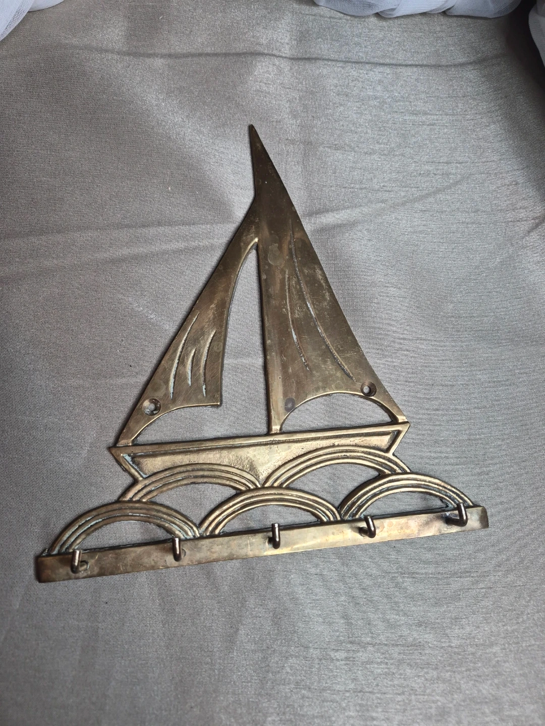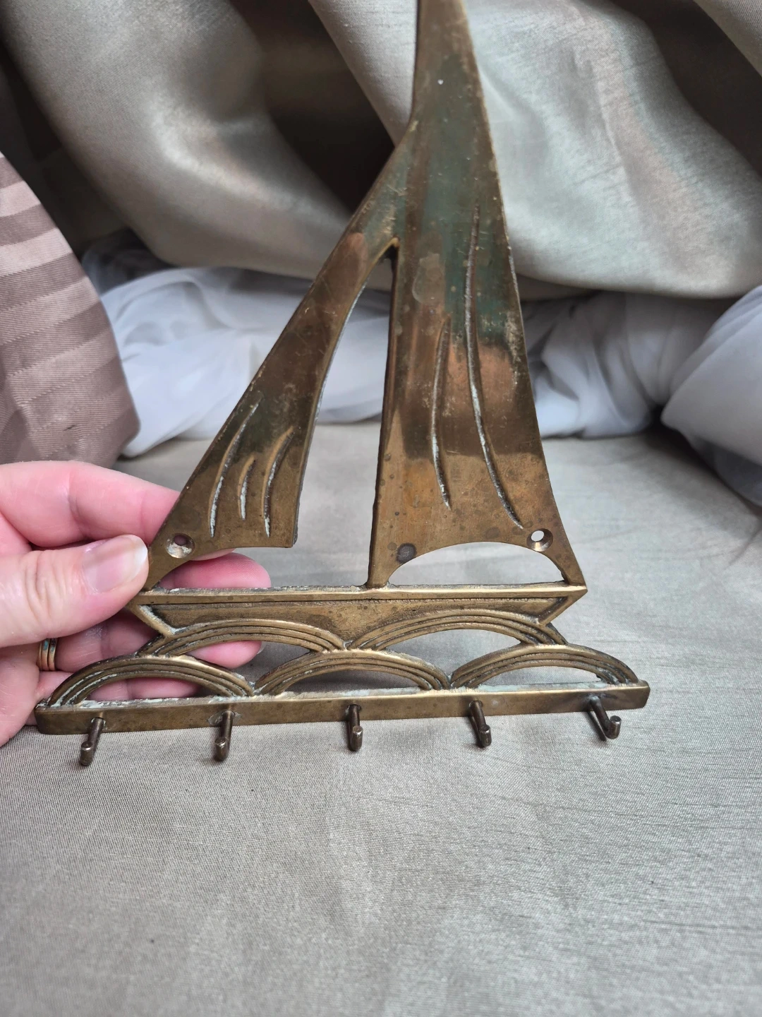 7" x 7 1/2" Ole Brass Sailboat Wall Hanging Key Holder no Hardware - please see all pictures