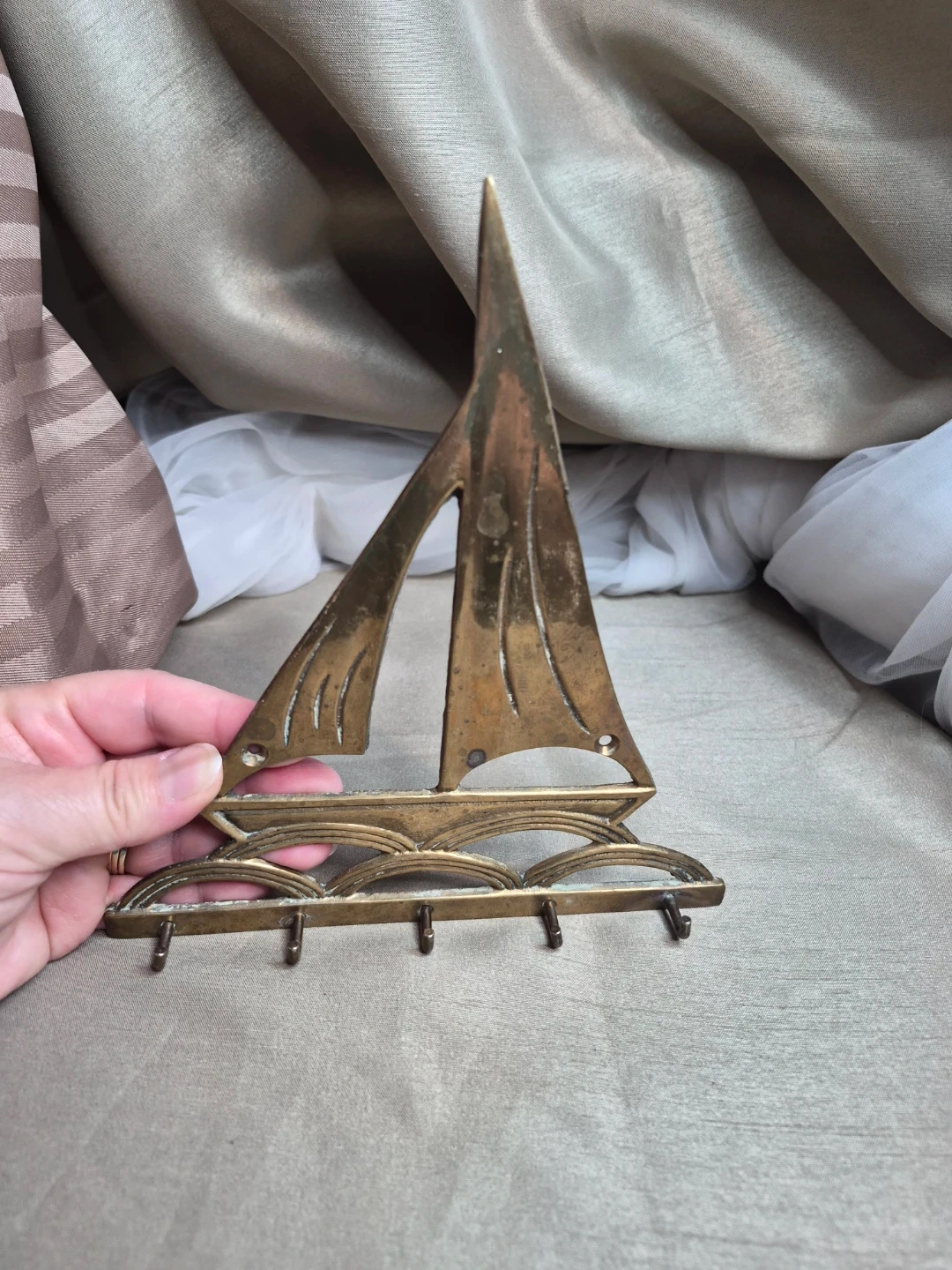 7" x 7 1/2" Ole Brass Sailboat Wall Hanging Key Holder