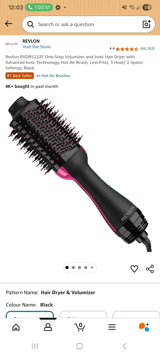 Revlon RVDR5222F One-Step Volumizer and Ionic Hair Dryer with Advanced Ionic Technology. Features 2 speed settings and 3 heat settings. It's great for drying and styling your hair.