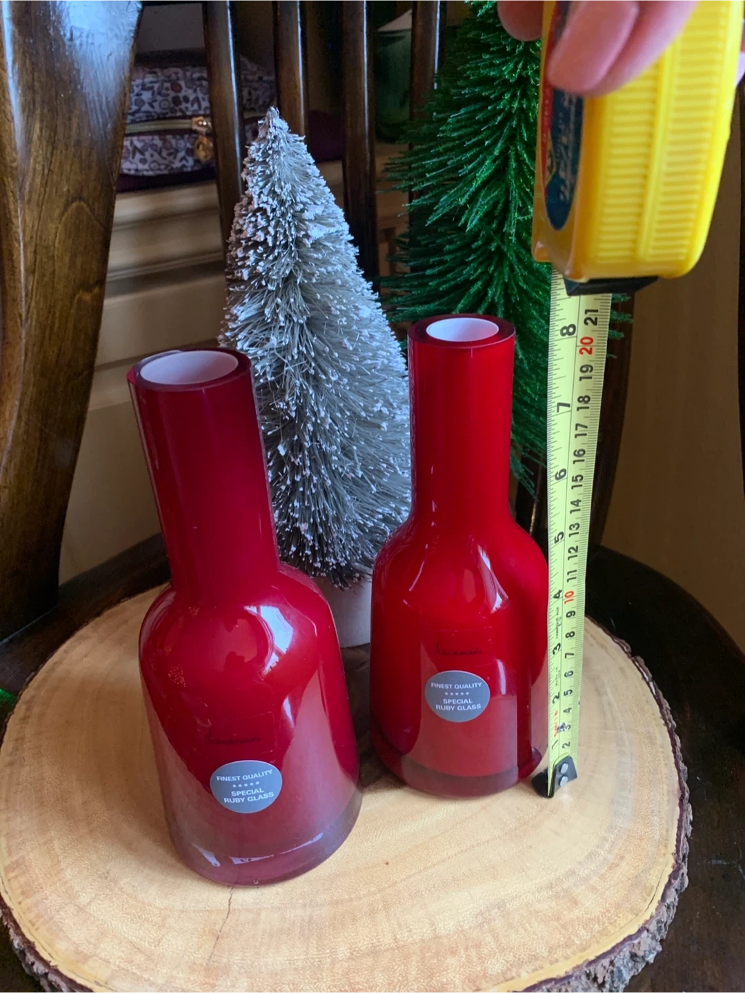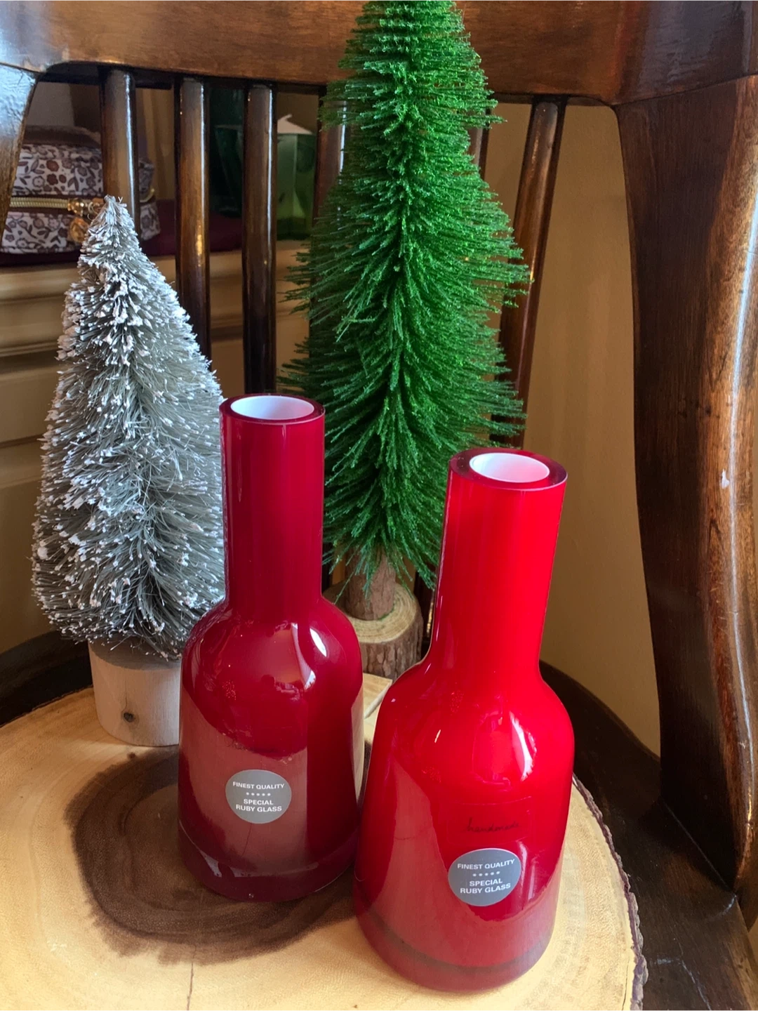 These are a pair of gorgeous Villeroy & Boch handmade vases made of special ruby red glass. They are vibrant shades of red colours and are made in Poland. They would look lovely with flowers or as decorative pieces. Measures approximately 8 inches tall. No chips or cracks. Will sell separately if you wish. Would look beautiful for a February tablescape! ♥️