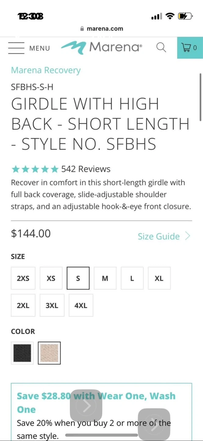 Marena Recovery short-length girdle with full back coverage. It features slide-adjustable shoulder straps and an adjustable hook-&-eye front closure. Medical device recognized for optimal performance.