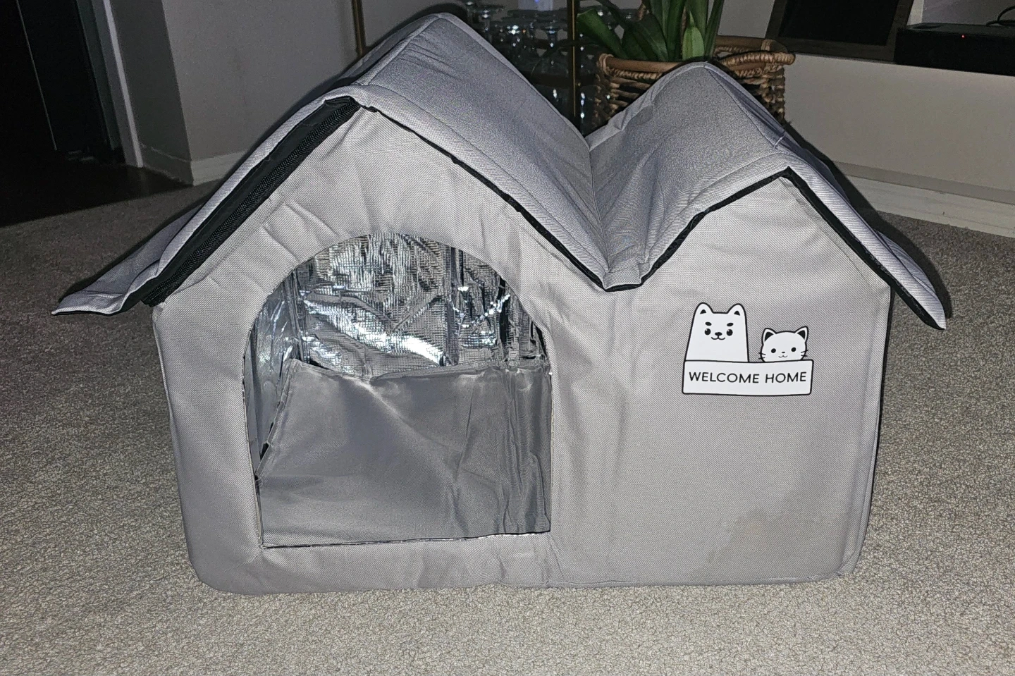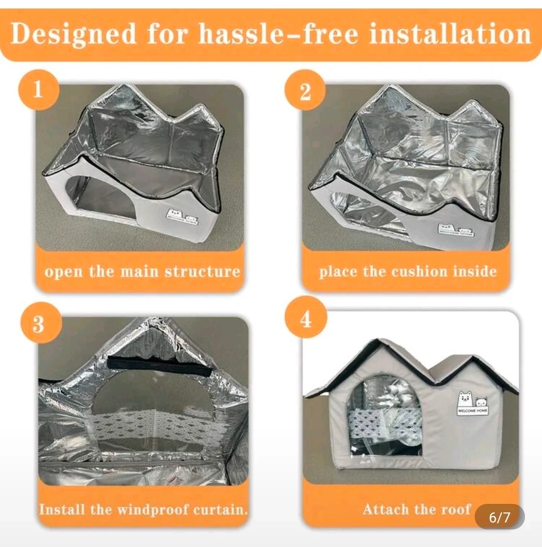 This grey insulated pet house is perfect for keeping your furry friend cozy. It's made with insulation aluminum formwork for warmth. The house is suitable for small to medium sized pets weighing up to 30 LB. It is foldable, easy to install in four quick steps!