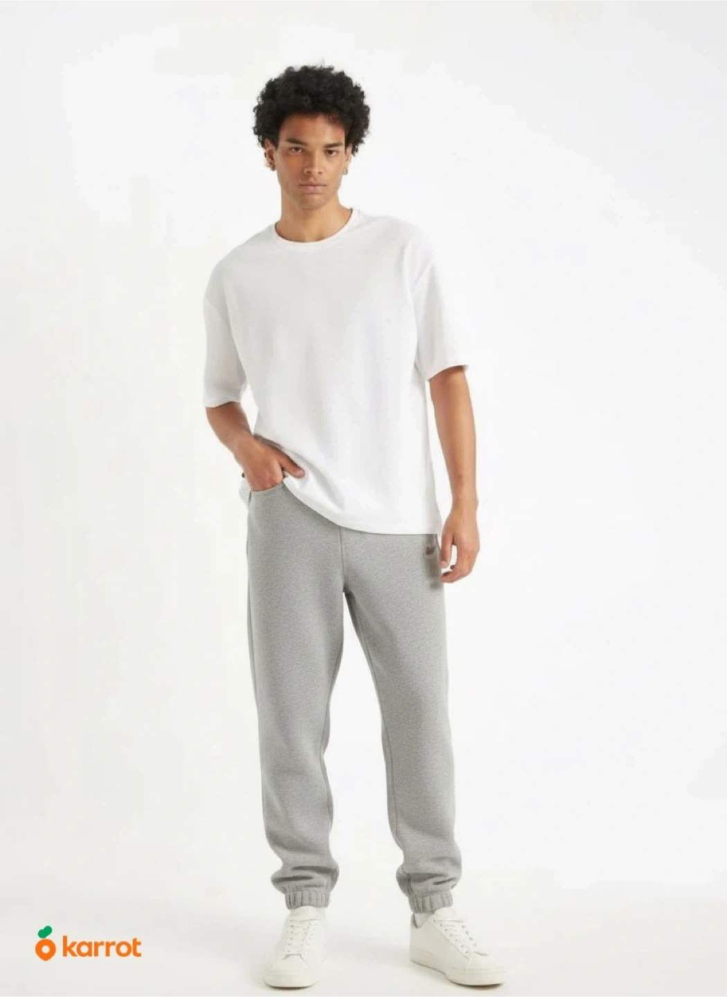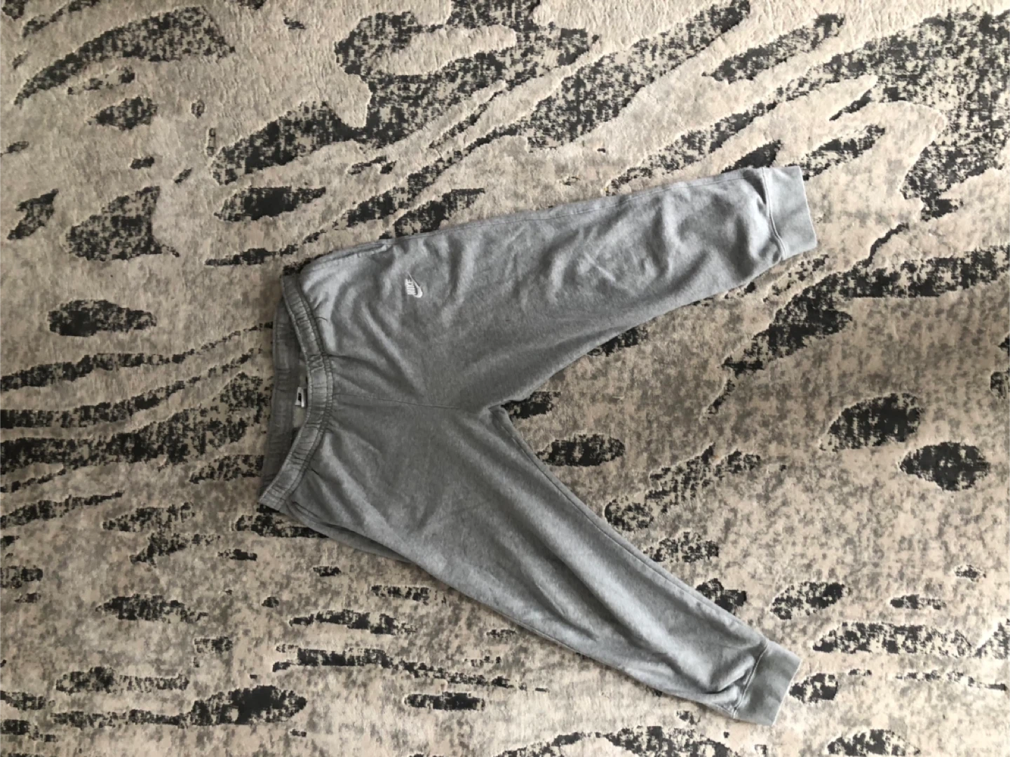 Comfortable grey sweatpants by Nike. Made from a soft, breathable fabric, they're perfect for lounging or casual wear. Elastic waistband and cuffs provide a snug fit. Small stain