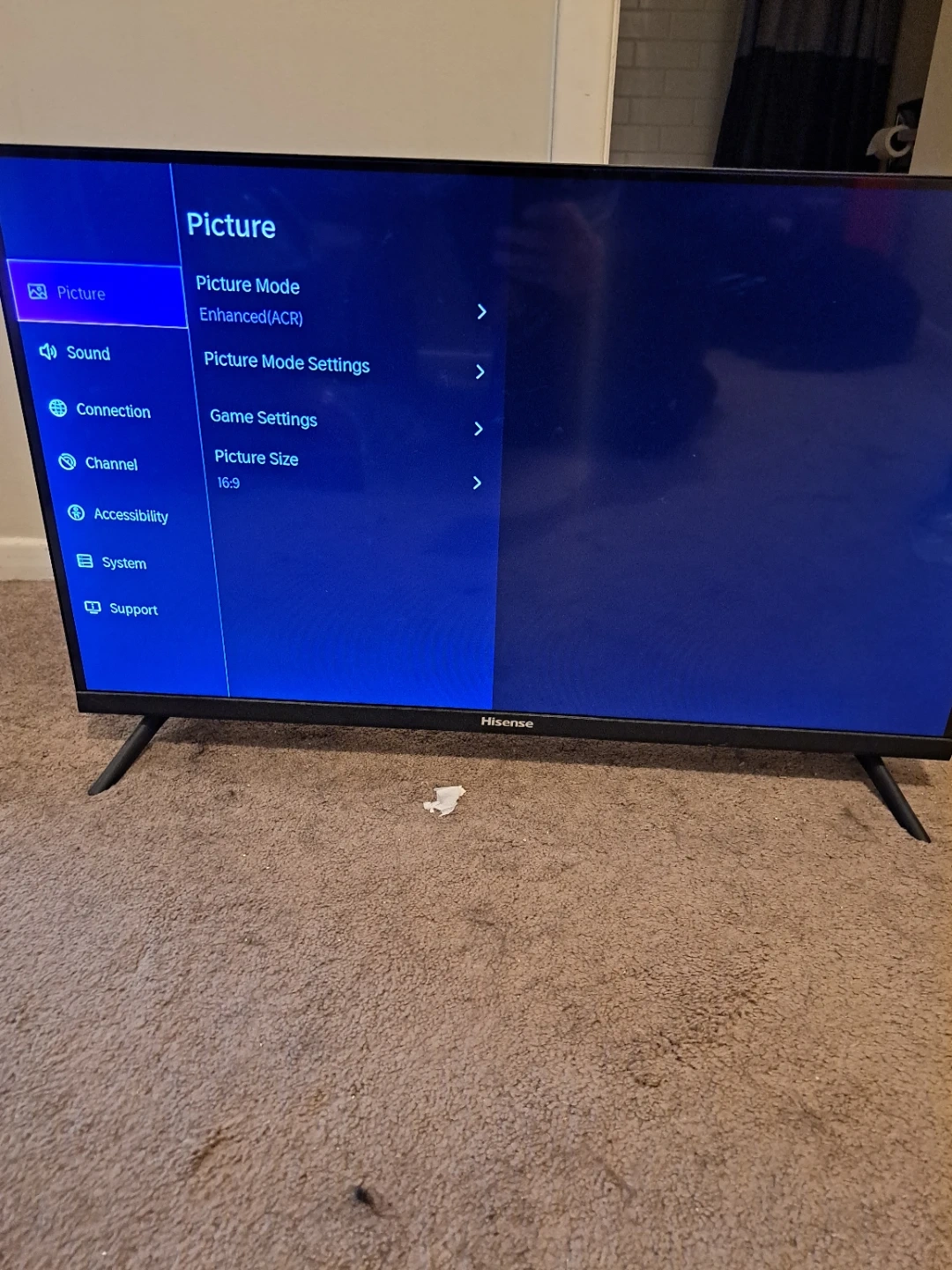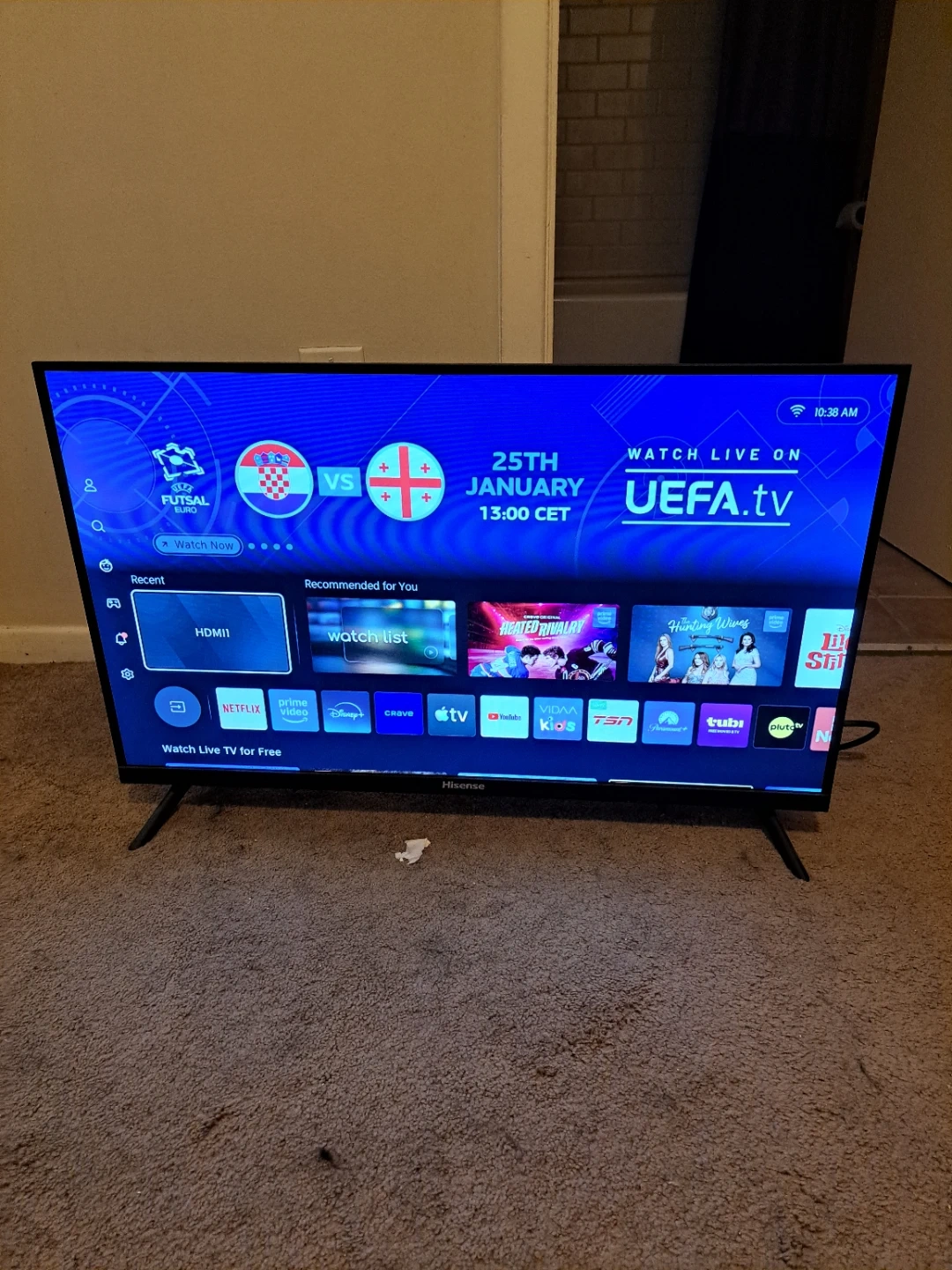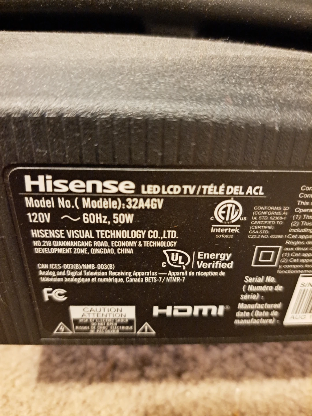 It's a Hisense 32-inch smart TV. It has multiple HDMI and USB ports. The TV comes with a remote. No issues at all
