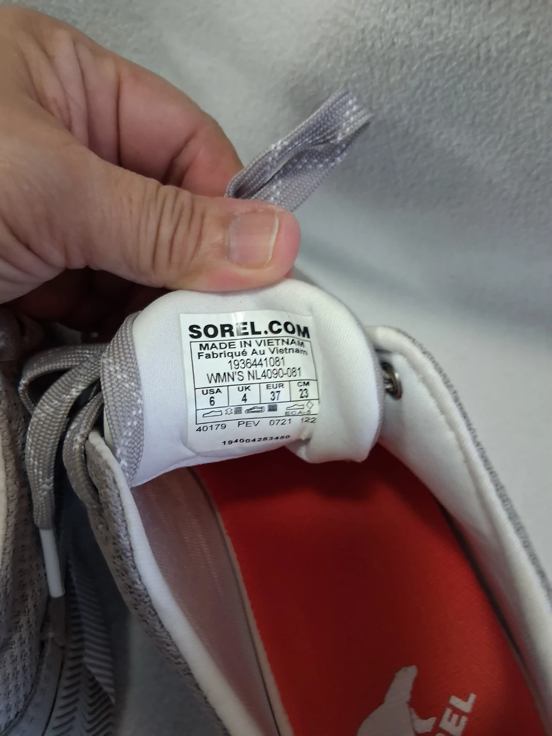 Sorel sneakers in a light grey colour. These waterproof shoes are a women's size 6 (UK 4, EUR 37, CM 23).