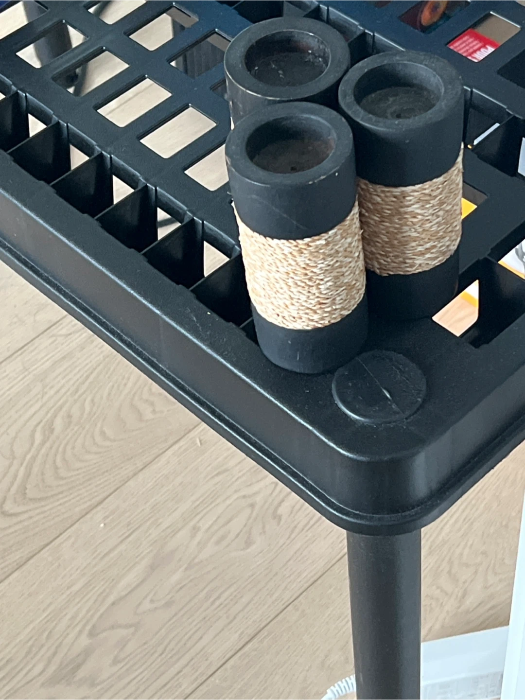 Three black wood candle holders accent. They're cylindrical and designed to hold standard candles. Perfect for adding a cozy touch to your decor!